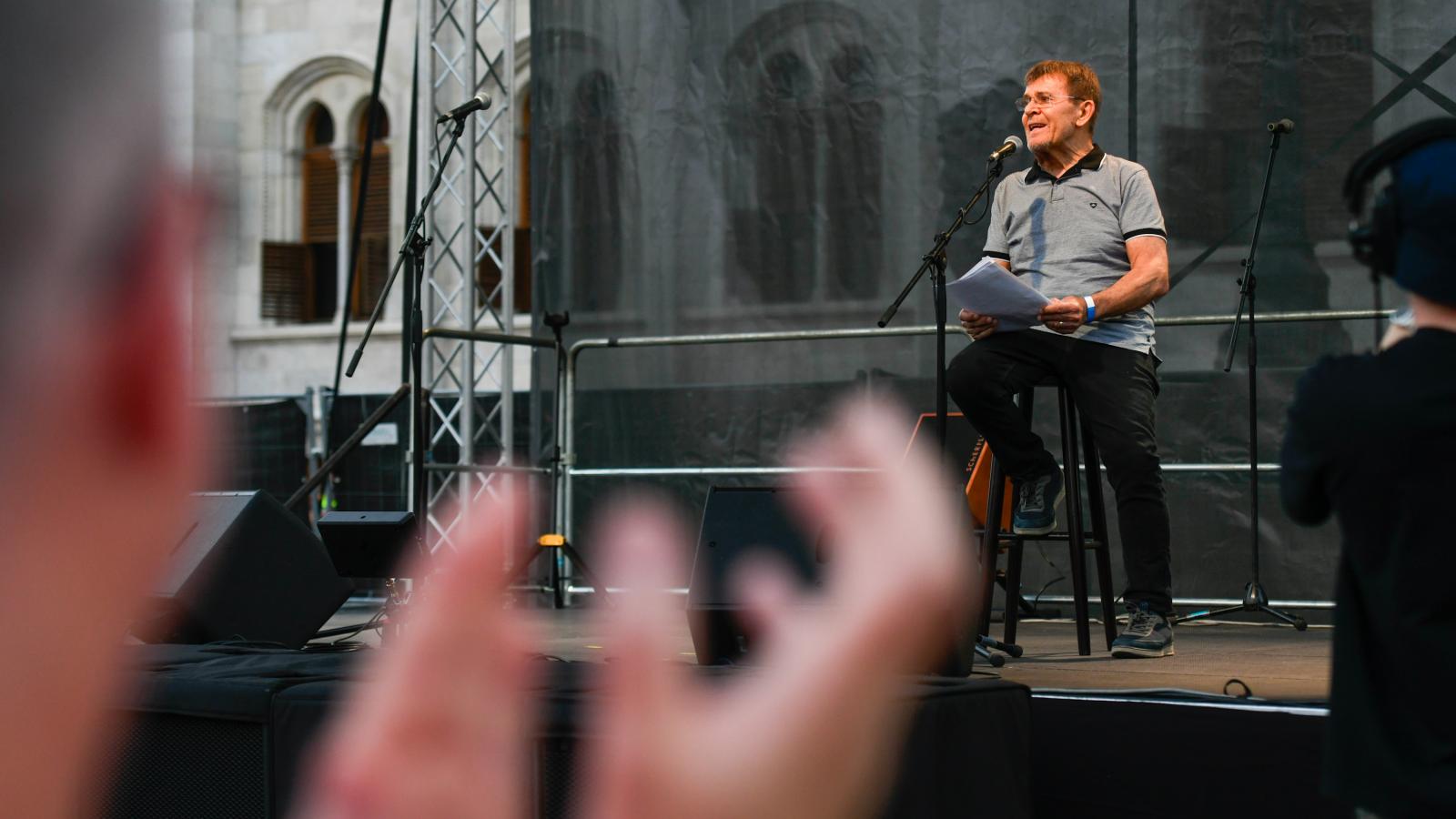 Szerinte a nemzetnek van elege az Orbán-kormányból, az emberek se nem háborúpártiak, se nem poloskák, se nem kémek, se nem hazaárulók. Legfőképpen nem agymosott Orbán-hívők. – Szabad emberek, akik, ha a szabadságról van szó, tapodtat sem hátrálnak. Én például kisnyugdíjas korúvá kövült forradalmár vagyok, akit nem lehet megvásárolni sem harmincezer forinttal, sem tizenharmadik havi nyugdíjjal, sem ígérgetésekkel, ennél drágább rongy életem és a hazám becsülete - jelentette ki.