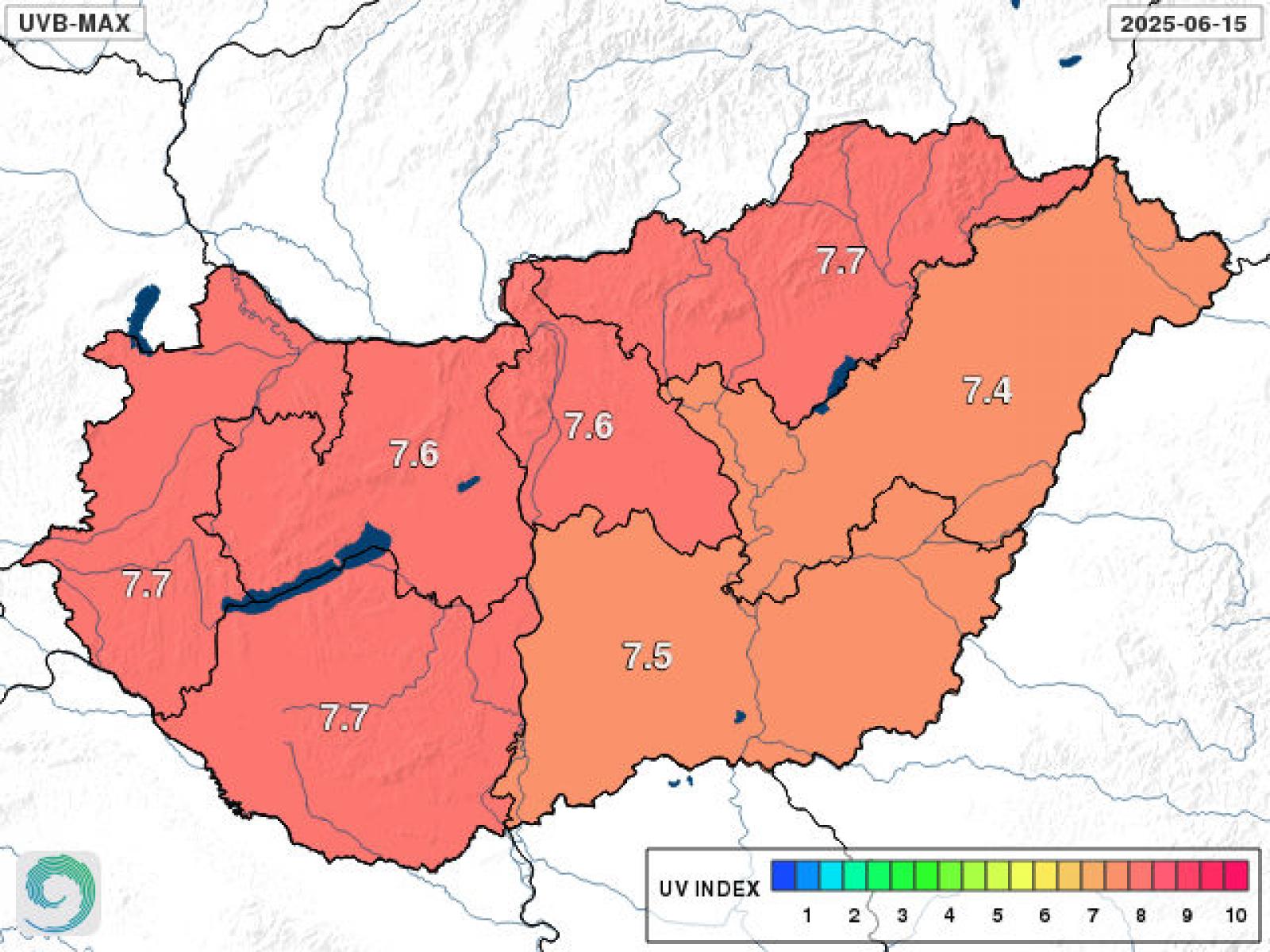 A várható UV-B értékek területi eloszlása itt megtekinthető.