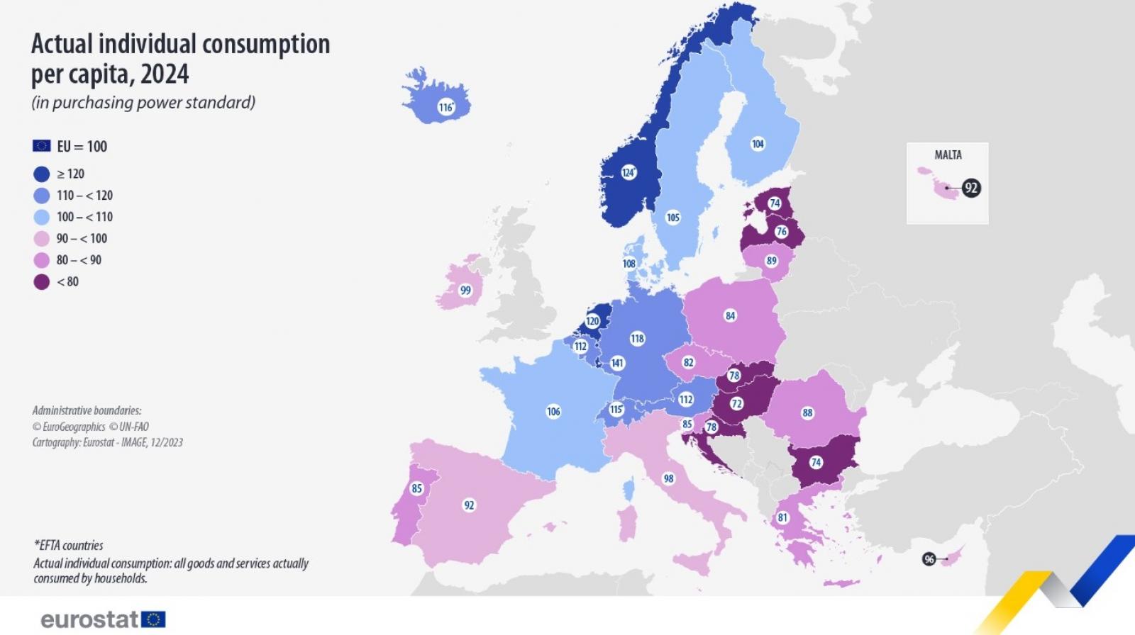 az EU-ban a legjobban a luxemburgiak élnek, ott az uniós átlag 141 százaléka a fogyasztás,