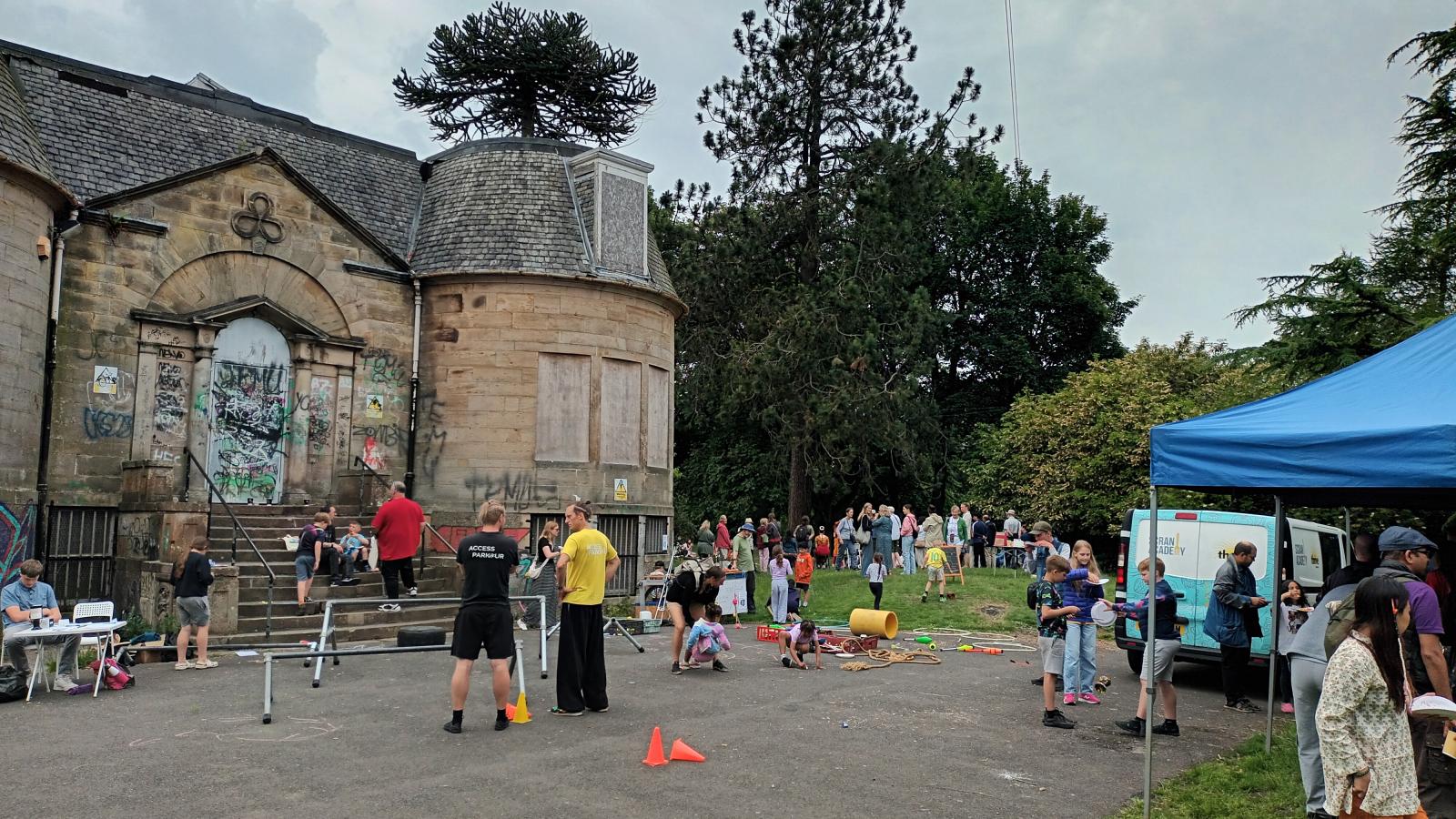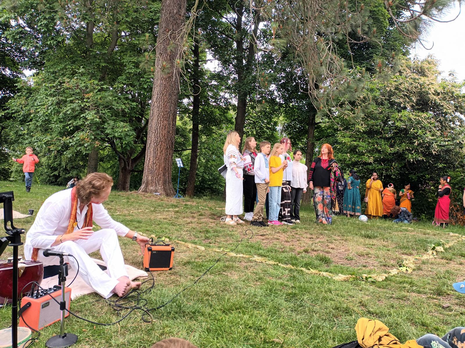 Az volt a tervem, hogy kinézek a gyerekekkel a Pride felvonulásra, de végül is nem tudtam ezt a fesztivált otthagyni, elvarázsolt. Maga az edinboroughi Gracemount közösségi kert és a mellette elhelyezkedő egykori szabadkőműves ház, arra esküdött fel, hogy ennek az igen viharvert környéknek a lakosságát támogassa és gyámolítsa. Most is hihetetlen programkavalkáddal vártak mindenkit. Ingyen pizzasütés egész nap, gyereksarok sátorral, japán masszázs, játékok, kézműves foglalkozás, ingyenes büfé, egészséges ételek sora, koncertek, parkouros bemutató és gyakorlási lehetőség (ők csinálnak épületek tetején merész mutatványokat, vagy használják ugrálóvárnak a város egészét...), zsonglőrködés, tombola. Egy darabig segítettem a páromnak berendezni a sarkát, ő lett a kézműves sarok felelős, aztán elvegyültem. A rendezvény egy másik részén egy szitáros embert vettem észre. Annyira elütött az egész ottani tömegtől libegő fehér ruhájában, aszkéta arcával, hófehér hajával, hogy mellé ültem le. Olyan régen nem láttam már szitárt, hogy arra gondoltam, ez lesz az én helyem.