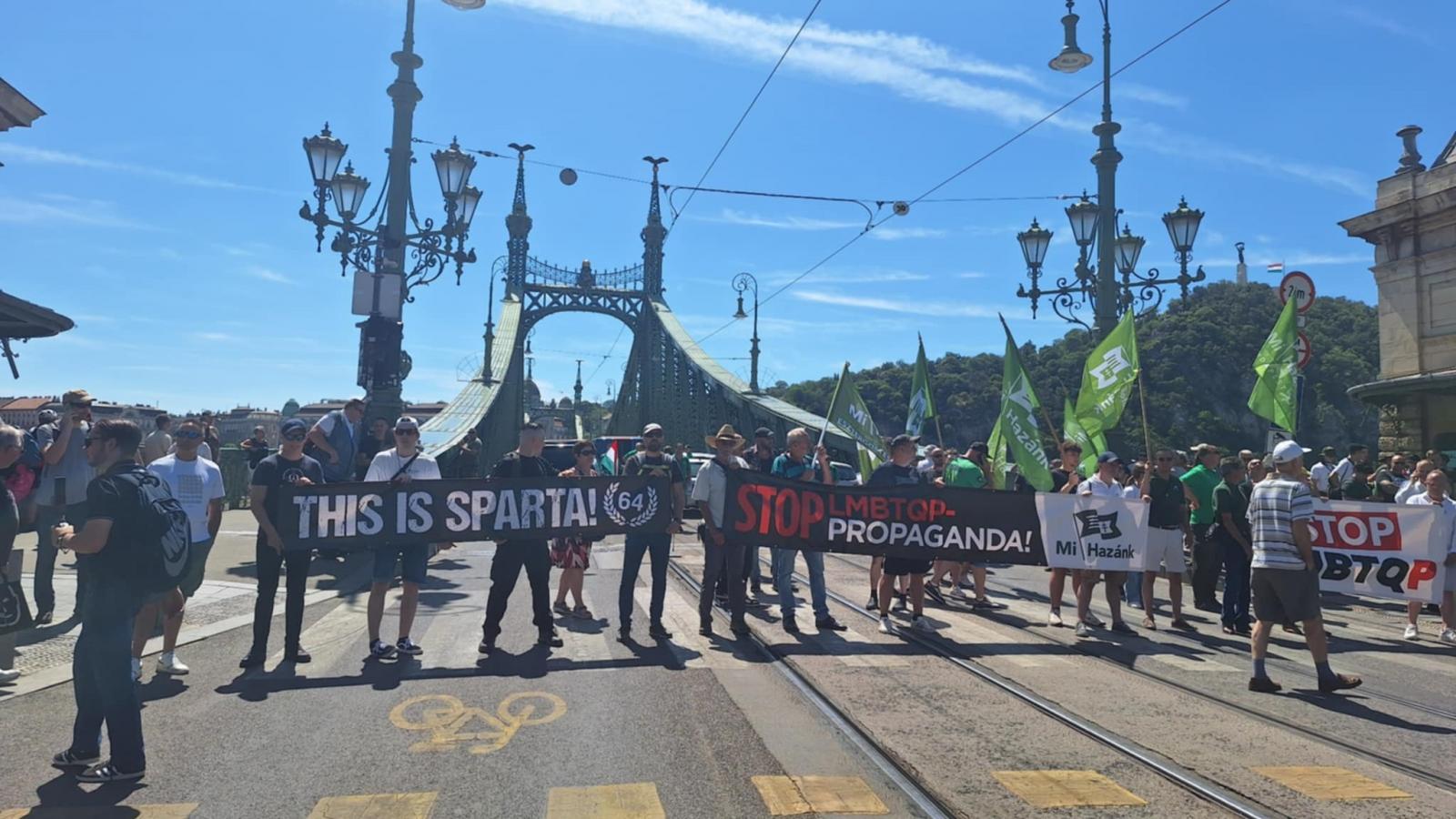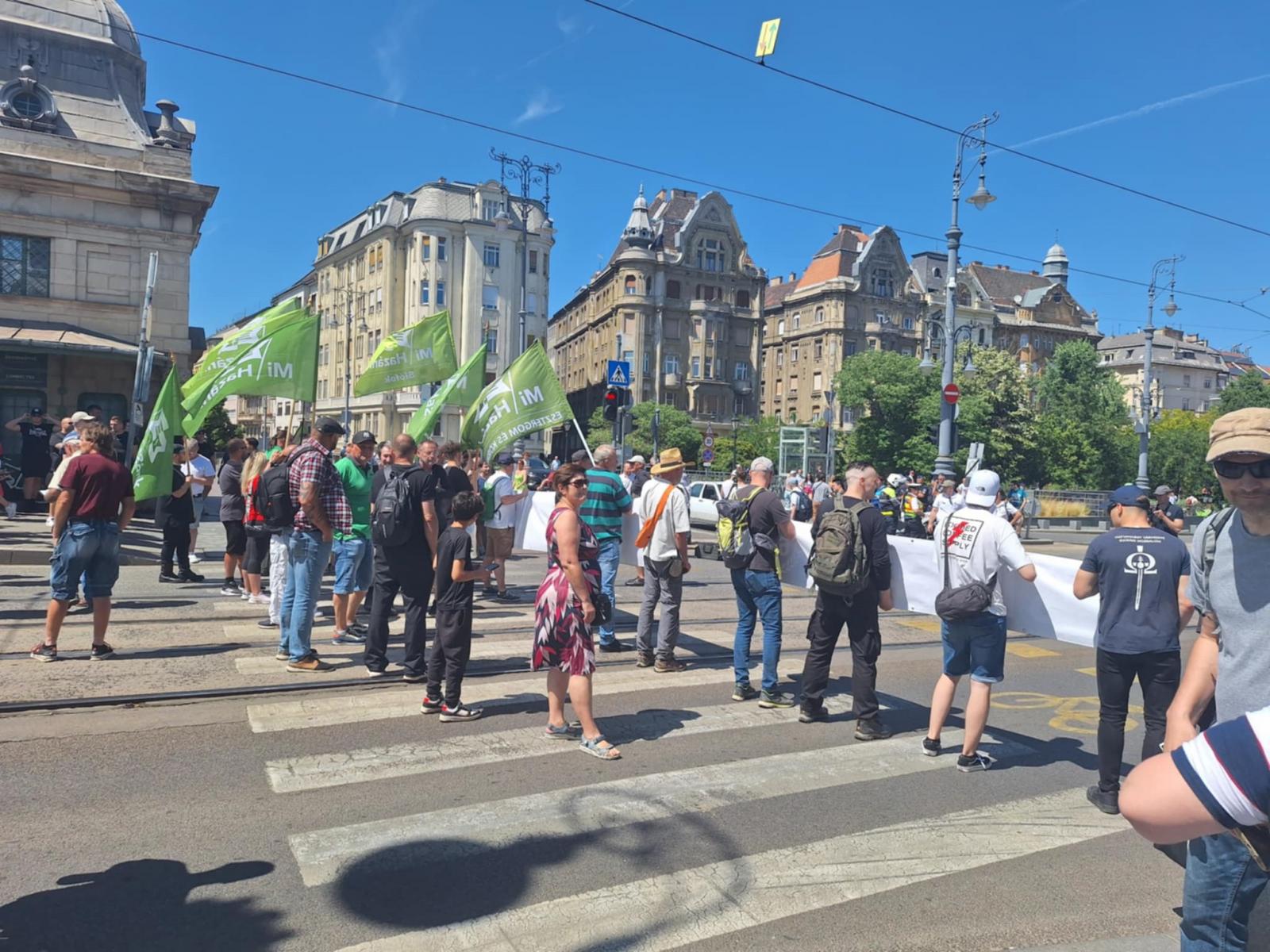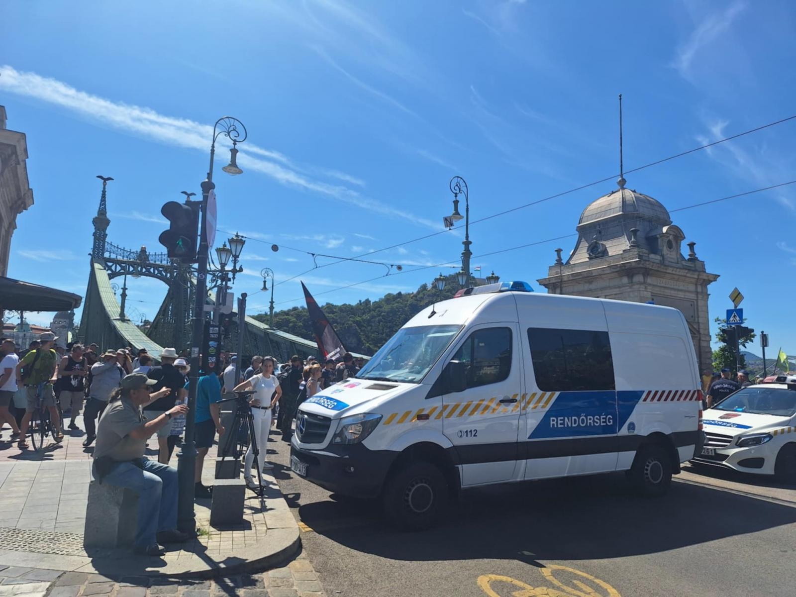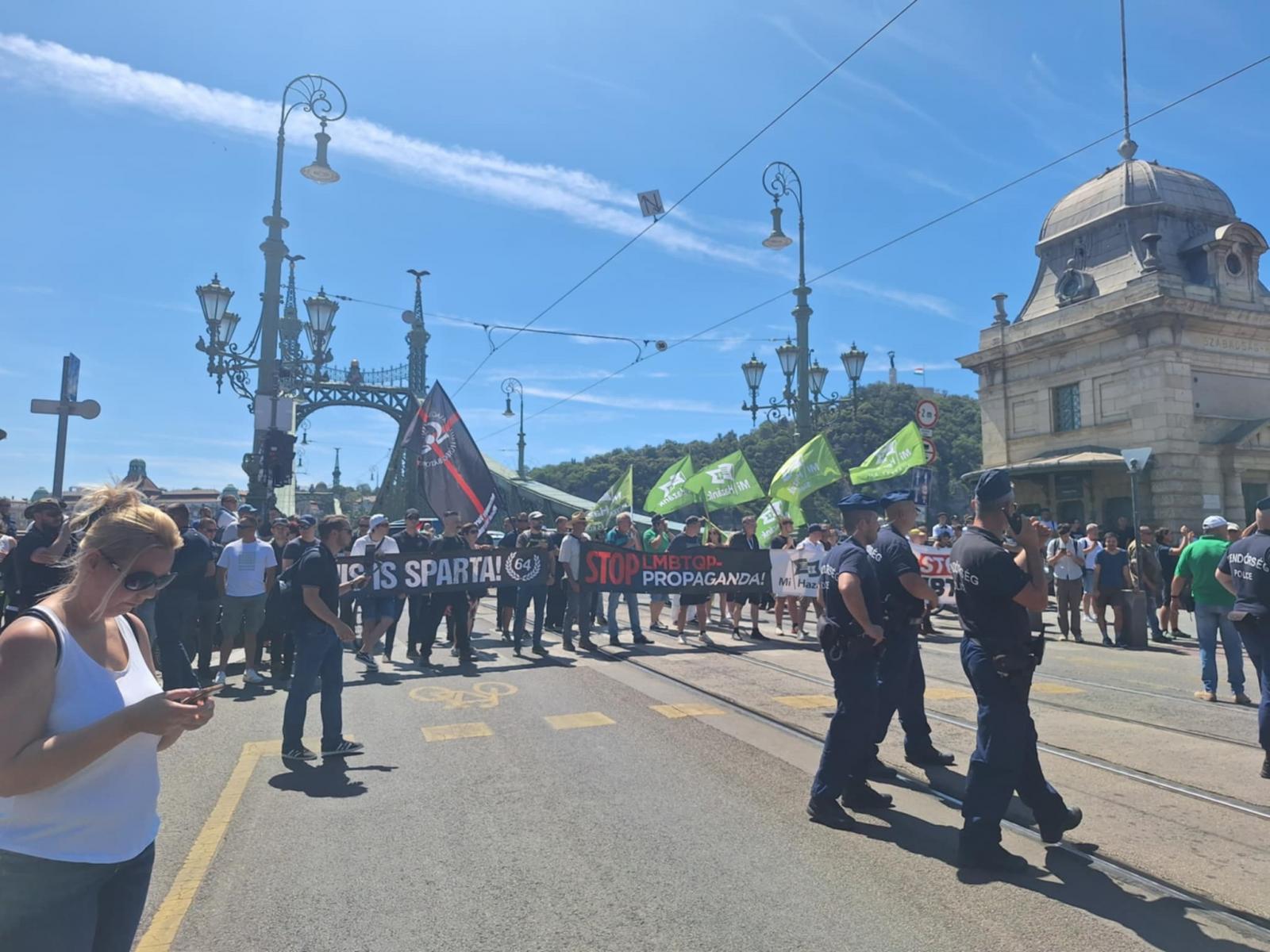 Nem járnak a villamosok sem. Háromszázan lehetnek, fél 3-kor Novák Előd fog sajtótájékoztatót tartani.