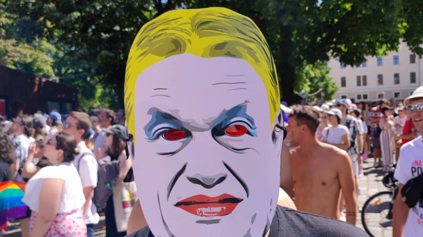 Egy Olaszországból érkezett fiatal férfi helyszíni tudósítónknak elmondta, hallott róla, hogy a gyermekvédelemre hivatkozva betiltották az eseményt. Félt kijönni, de itt ünnepli a legénybúcsúját, és jól érzi magát. Orbános maszkban jött a rendezvényre, abból több is van a felvonuláson.