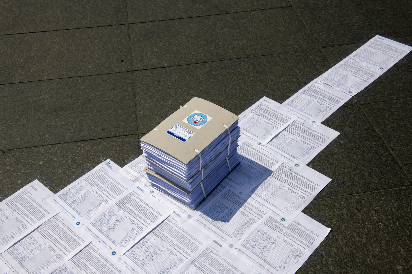 Az összegyűjtött, papíralapú íveket vasárnap délelőtt adták át Budapesten a Belügyminisztérium Szalay utca épületében.