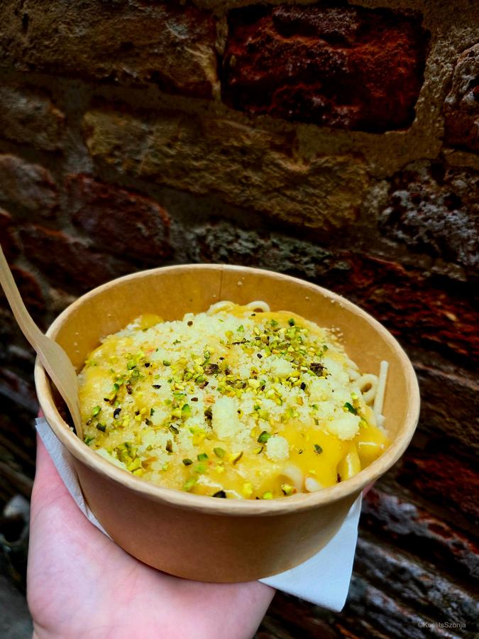 Életem egyik legjobb aglio olio, vagyis fokhagymás-olívaolajas spagettijét egy velencei sikátorban ettem, egy kicsi, eldugott olasz büféből, ami csak elvitelre ad ki ételt, így 30 másik turistával a fal mellett topogva tömtük magunkba a forró olasz tésztát. Kis találékonysággal szuper ebédet lehet találni, ha az ember pár percet szán a vélemények olvasására és a fotókra a Google-térképen. Minket ezek mentettek meg több túlárazott, jellegtelen ételtől.