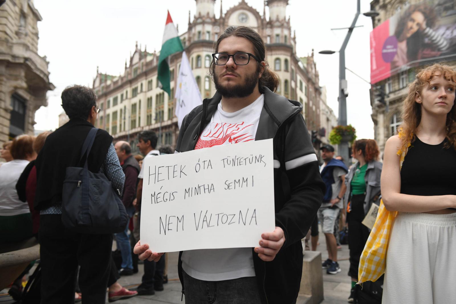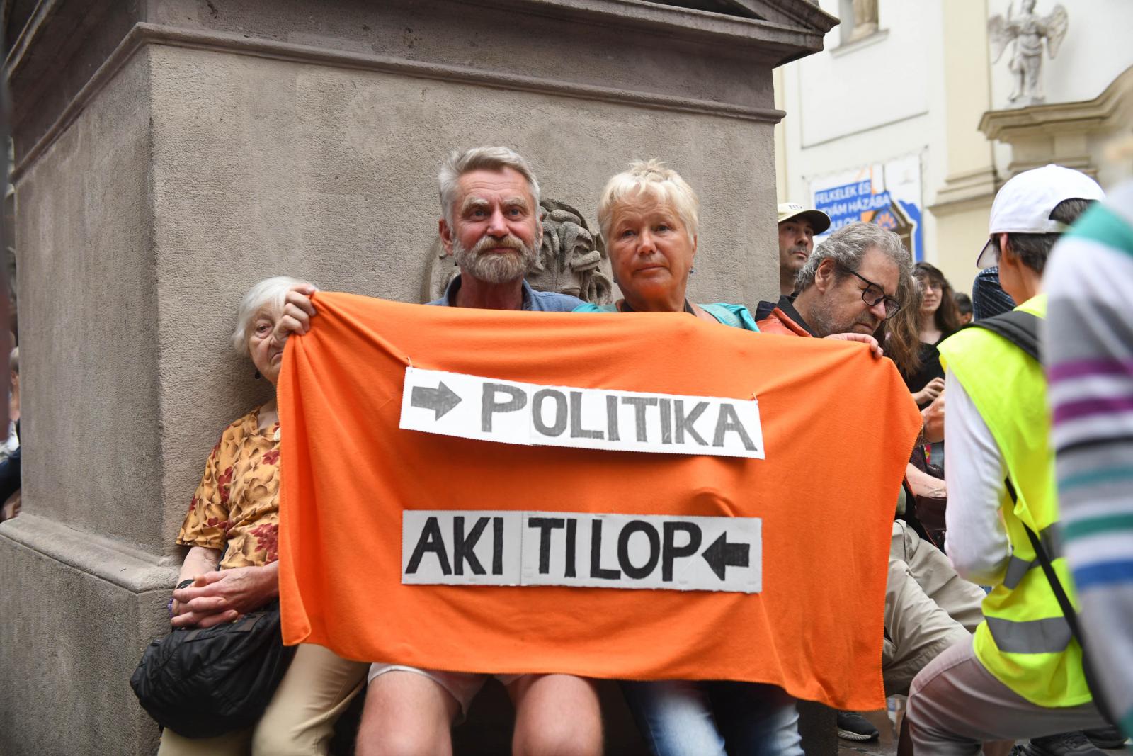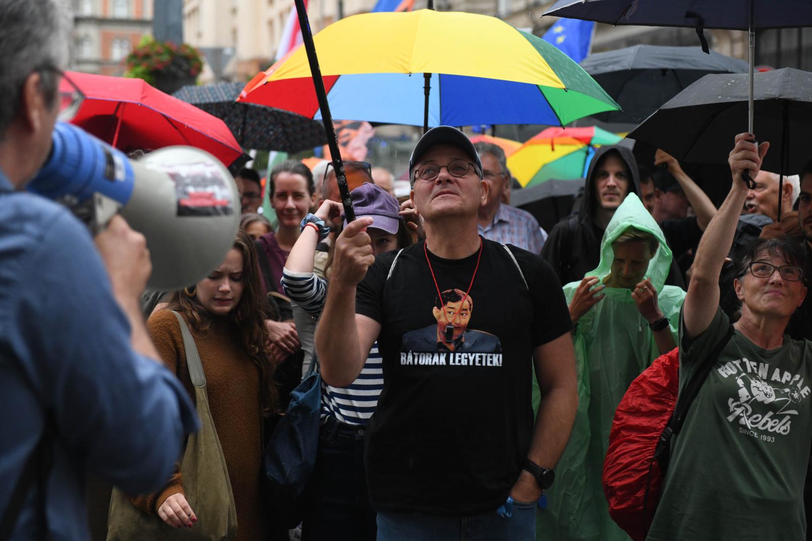 A független országgyűlési képviselő a megjelentekhez szólva azt mondta, a nyomás hatására elhalasztották az úgynevezett ellehetetlenítési törvény szavazását, jelenleg pedig a Pride-dal összefüggő rendőrségi döntésnél is bizonytalanság látszik, ezért szerinte ezt a helyzetet ki kell használni, és tovább kell követelni a „technofasiszta” törvény visszavonását. Hangsúlyozta, hogy a társadalmi megmozdulások hatására a hatalom képes visszalépni, az elemzőkre nem szabad hallgatni, az Orbán-kormányban pedig bizonytalanság tapasztalható, így ezentúl nehezebb lesz választási csalásokhoz folyamodnia.