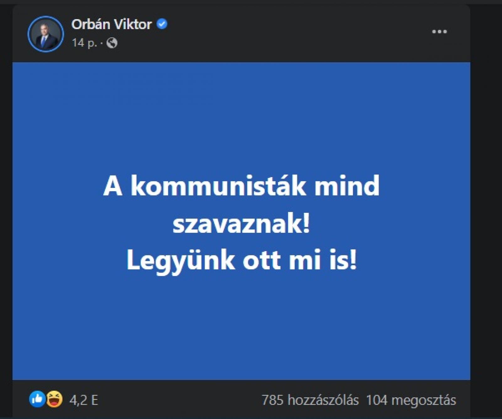 Máskor azt a vágyát fejezte ki: „Remélem, a negyedik vereséget már nem élik túl a kommunisták!” Mondhatja persze Orbán, hogy ő mindig a pártokról és sosem a szavazóikról beszél, de ezt azért talán ő sem hinné el. Egyrészt választások idején nem így fogalmaz. Másrészt ha mégis úgy gondolja, hogy csak a pártokat sértegeti, akkor innen is üzenjük: nem csak azokat. Rekessze be a kommunistázást, és hátha kitisztul a kép.