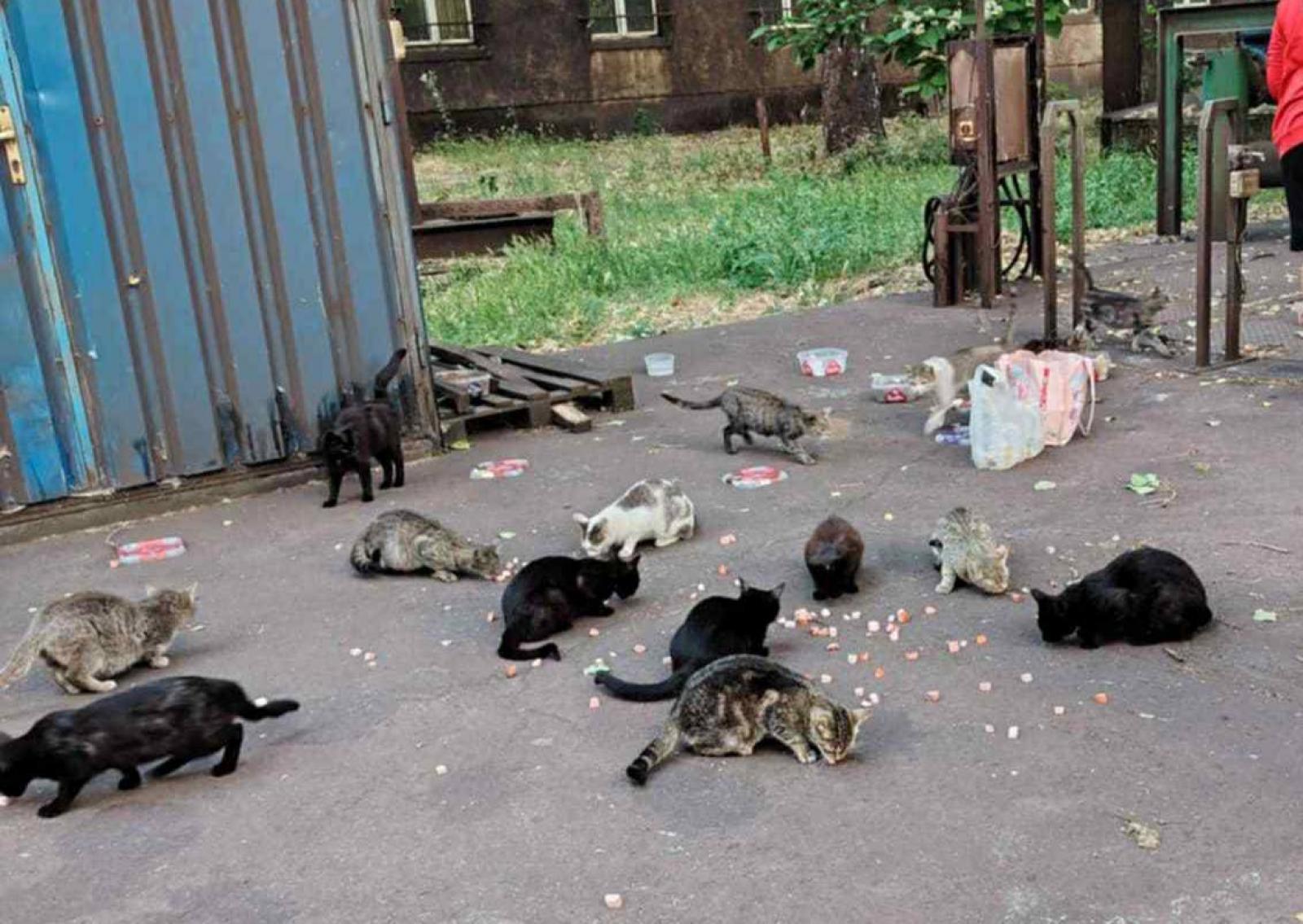 Eleinte csak páran, majd egyre több helyen egész kolóniák, 20-30 egyeddel dugták elő a fejüket a kihalt épületek közül. Lesoványodott és lebetegedett, harci sebekkel teli kandúrok, csont és bőr szoptatós anyamacskák, akik két hete nem ettek, körülöttük a tavasz végi szaporulat, tucatnyi kismacska náthásan, beteg szemmel, ami a fiatal állatokra még halálos veszélyt jelent. Sorsukra hagyott kis életek százai, hiszen akik eddig róluk gondoskodtak, többé már nem tehetik be ide a lábukat. Nehéz helyzet ez, mert az állatvédelmi törvény is felelősséggel ruházza fel azt, aki magához szoktat egy állatot, és a vezetőség kifejezetten tiltotta is a dolgozóknak a macskák etetését. De ha nem tették volna, biztosan éhen haltak volna sokan. Ilyen mértékű állatszaporulat esetében pedig aligha lett volna elvárható a pár macskabarát alkalmazottól, hogy a több száz állat ivartalaníttatását vállalják, vagy vigyék haza és fogadják be őket, akár szelídek, akár teljesen vadak. Pedig sokakat befogadtak, dobozszámra vitték haza a kicsiket, amíg lehetett.