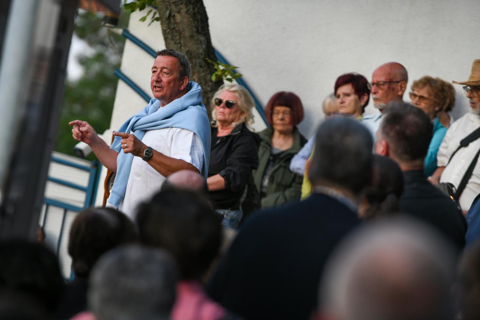 Harmadiknak szólalt fel Bayer Zsolt, aki azt mondta, hogy eredetileg nem akart beszédet mondani, csak néma főhajtásra készült. Elmondta, emlékezni kell, hogy minden háború szörnyű és teljesen értelmetlen. Sándor Fegyir magyarországi ukrán nagykövetnek címezve azt kérte, tolmácsolja az ukránoknak, hogy ők nem gyűlölik az ukránokat, csak el akarják érni a háború lezárását. Szerinte azonban Ukrajnában az állam hathatós támogatásával elhurcolnak és félholtra vernek férfiakat, Ukrajnát pedig nem szabad felvenni az Európai Unióba.