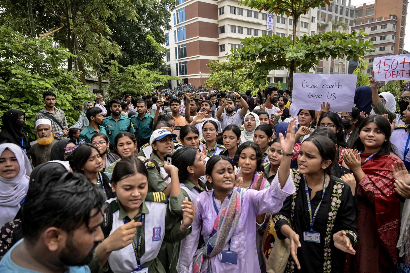 A bangladesi légierő dakkai iskolára zuhant gyakorlógépe miatti baleset halálos áldozatainak száma 31-re emelkedett - közölték kedden a helyi hatóságok. A nap folyamán tüntetésekre is sor került, az emberek a többi között a felelősök megbüntetését követelték. A kínai gyártmányú F-7 BGI vadászrepülőgép hétfőn csapódott be a főváros északi részén található kétszintes Milestone School and College-ba.