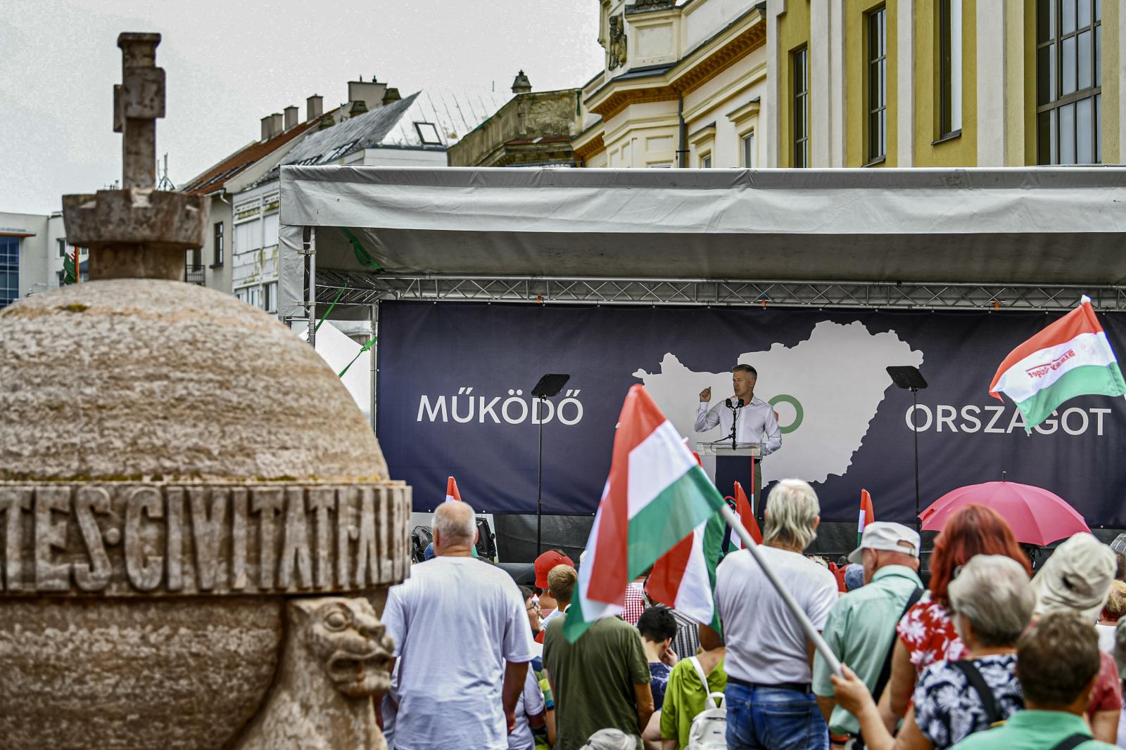Itt már csak a poénkodás maradt! - reagálnak Orbán Viktor eget rengetőnek szánt tusványosi bejelentésére, a Digitális Polgári Körökre amellett a színpad mellett, amelyet a székesfehérvári Városház téren állítottak fel a Tisza Párt szombat délelőtti tüntetésére. A miniszterelnök ma, szombat délelőtt állt újra a 34. Bálványosi Nyári Szabadegyetem és Diáktáborban, ahol azt is elárulta, belső fideszes felmérések szerint a Fidesz jövőre 106-ból 80 vagy 87 választókerületben nyerni fog. Magyar Péter politikai alakulatának a hívei nevetségesnek tartják ezt is, nem mintha a Tisza Párt elnökének a kijelentésein ámuldozni tudnának. – Persze nagy dolgokat most már éppen Magyar Pétertől sem várunk, de mit lehet még itt mondani, őszintén? Jó lenne előrehozott választás, ha holnap lenne, már az is késő – jegyzi meg egyikük.