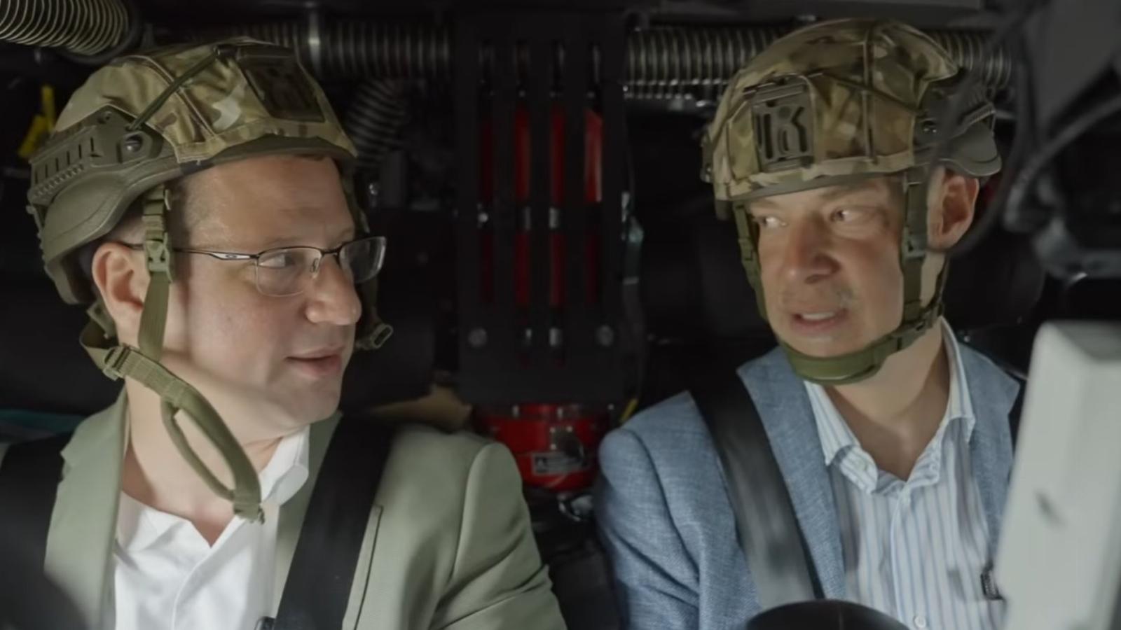 Végül bemennek egy hangárba, ahol elhangzik, hogy a Gidrán egy mezőhegyesi lófajta, ami a mai lovasságnak feleltethető meg. A két miniszter ezt követően kísérletet tesz a harci jármű hátsó felének kinyitására, azonban ez nem sikerül nekik. Végül egy katona segít megmutatni az „érzékeny technikát”. Később a Panzerhaubitze 2000-es önjáró tarackot is megtekintik, amely akár 60 kilométeres távolságig képes ellőni. „Tehát Budapest veszélyben” – jegyzi meg Gulyás Gergely.