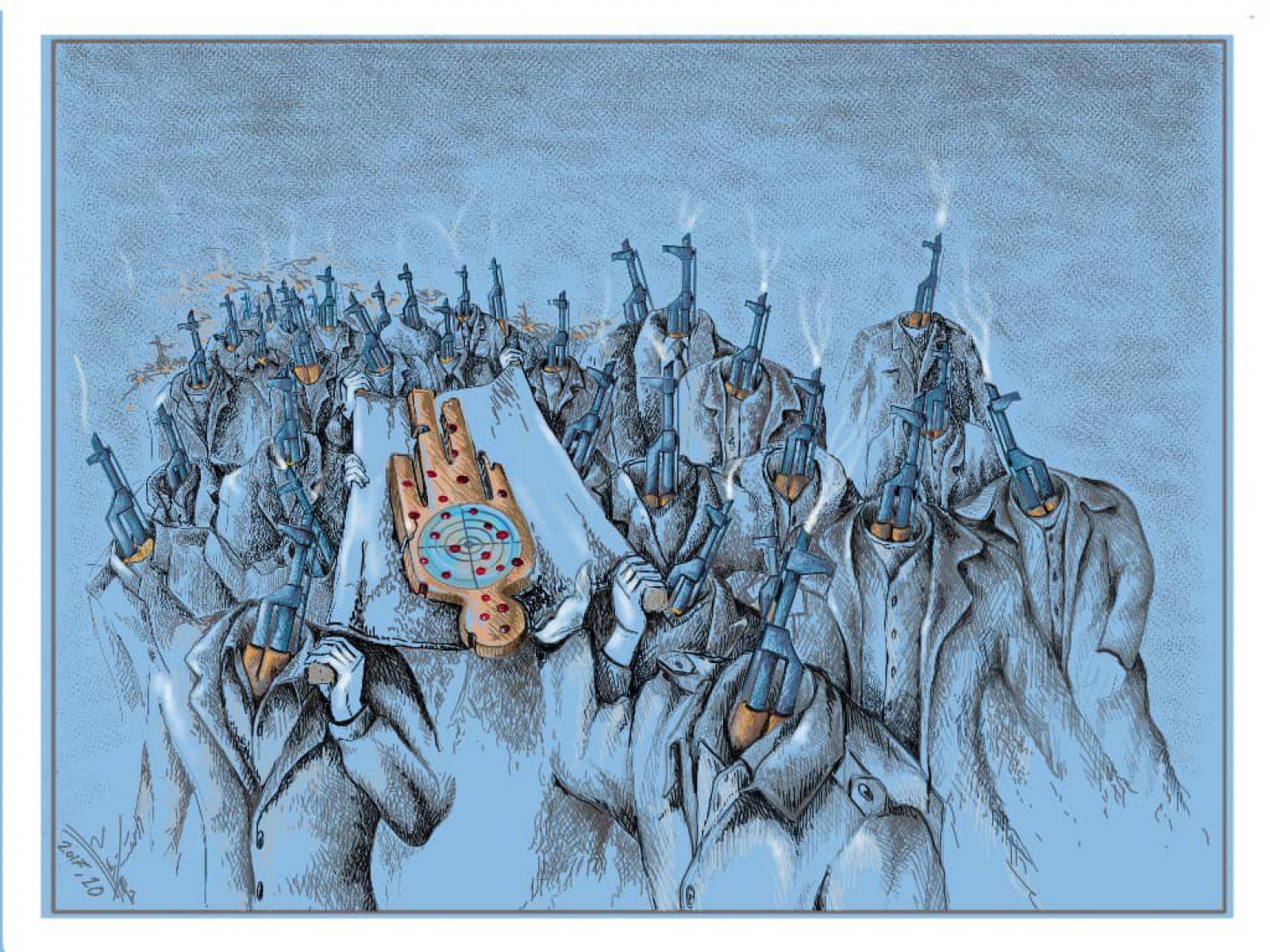 Amikor a szakmájáról kérdezem, Hoszein azt mondja, politikai karikaturistának lenni pár országot leszámítva már sok helyen nehéz. – Sok államban a politikai karikatúrák durva reakciót váltanak ki a kormány részéről, és valamiféle megtorlásra számítani lehet. Azt gondolom, hogy az olyan művészeknek, mint én, akiknek lehetősége adódott egy olyan helyen élni, ahol tényleg szabad a véleménynyilvánítás, van egyfajta felelősségünk, hogy felszólaljunk azokért, akik elnyomó rezsimekben kénytelenek élni és dolgozni. Mindig lesznek olyan emberek, akiknek a hangját nem hallják meg, és a mi felelősségünk, hogy lehetőségeinkhez mérten megmutassuk a fájdalmukat és szenvedésüket, hallassuk a hangjukat – véli Hoszein.