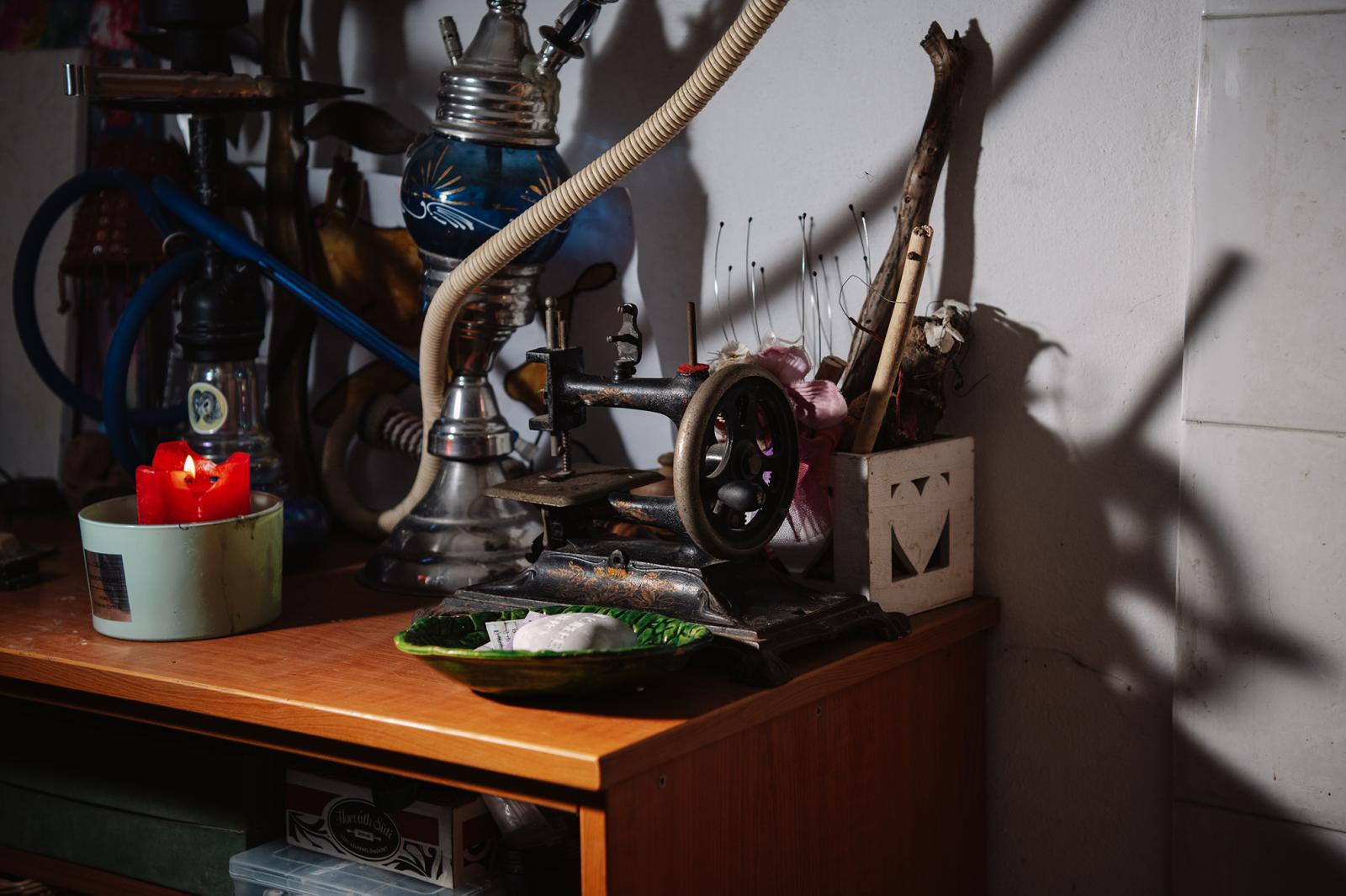– nevet Dóri úgy másfél tucat szoknya mögül. – Varrni autodidakta módon tanultam, még 14 évesen varrtam meg magamnak az első nadrágomat. Utána a barátnőmnek is, abban járt Depeche Mode-klubba, annyira jól sikerült. Különben nekem ő volt az első varrógépem, ez a kézzel hajtós pici – mutat rá egy csodás, muzeális kis gépre. – Ezt nem volt szívem leselejtezni. A férjem informatikus, szereti, ha van minden itthon, meg bármi jó lesz még valamire, ezért rengeteg kincset őrizget a padláson. Én általában leadom valahol, amit már nem használok, a könyveket például az FKF-nek. A hulladékudvarban van egy polc, ahol 50-100 forintért tök jó könyveket találni. Szerintem erre nevelni kell a gyerekeket is, mert eszméletlen módon pazarlunk. Az újrahasznosítás nekem mindig is szívügyem volt, mi a barátnőimmel rendszeresen csinálunk egymás közt ruhacserét is – magyarázza Dóri, miközben Sándor, a „blablador” kimegy, és a műhely előtt feltűnik Micike, a szintén mentett cirmos macska.