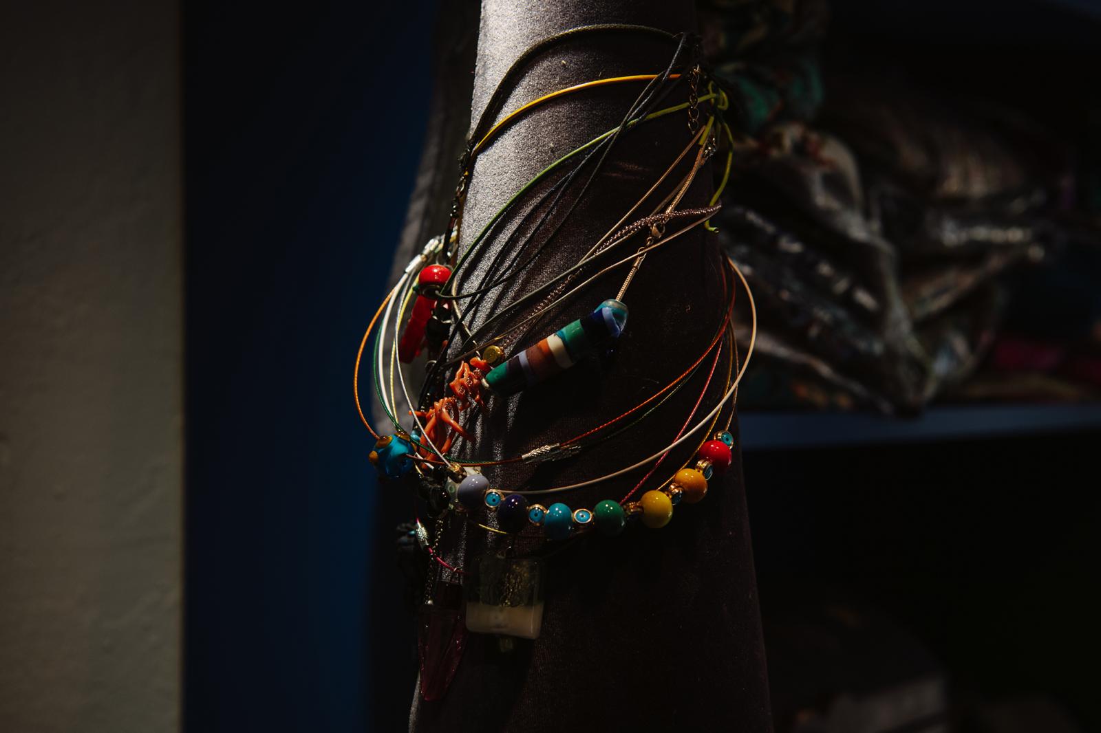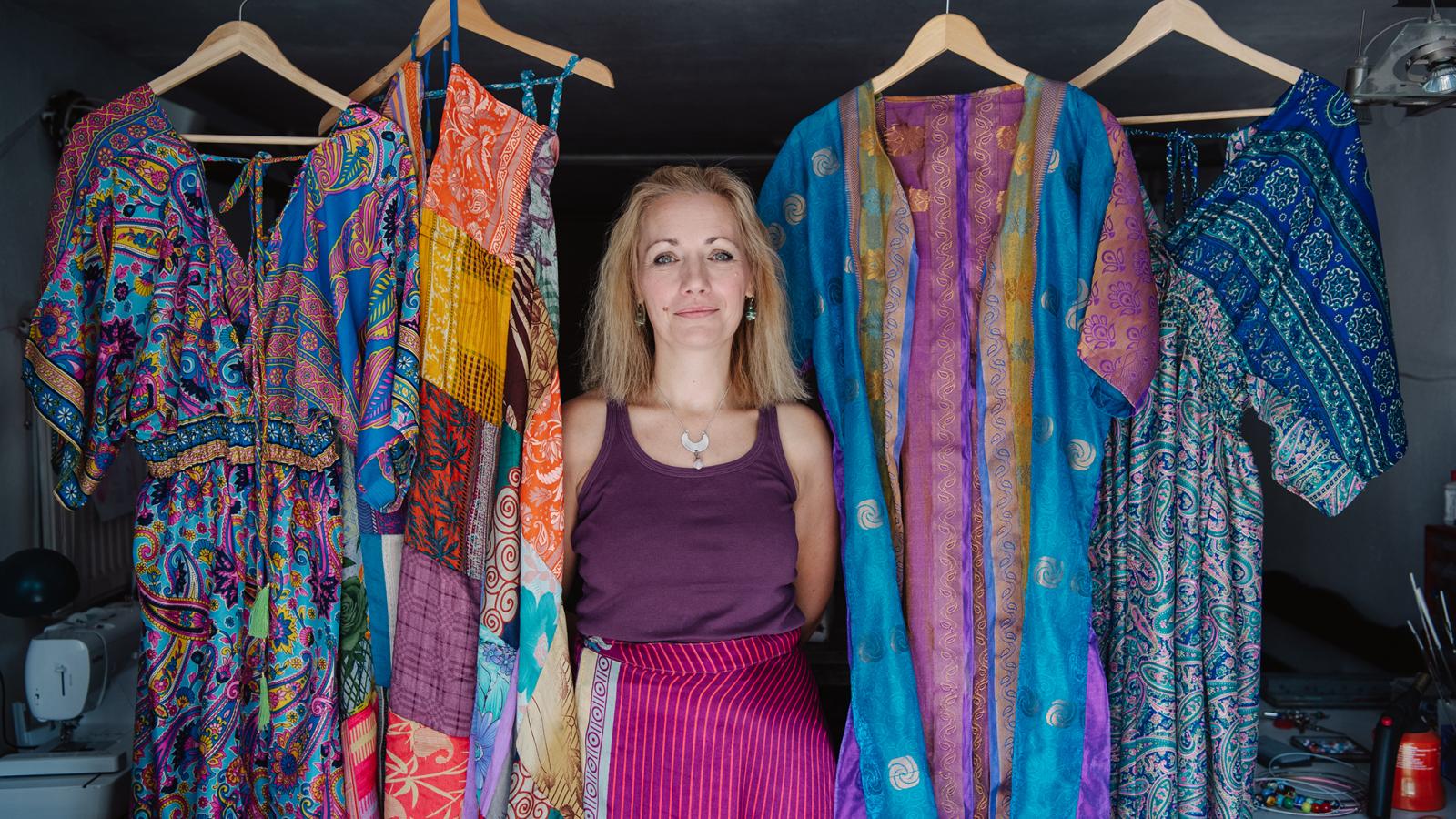 Elindítottam az egytermékes webshopomat, amit az egy éves képzés alatt építettem fel, először a száriszoknyával, utána jött a többi dolog hozzá. Szépen lassan megint elkezdtem varrni, újra ékszereket csinálni, sokkal egyértelműbben éreztem, hogy mi az, ami belőlem jön – meséli Dóri, miközben felsorakozunk a ruhaállvány mellé, melyen már a saját készítésű darabokat mutatja.