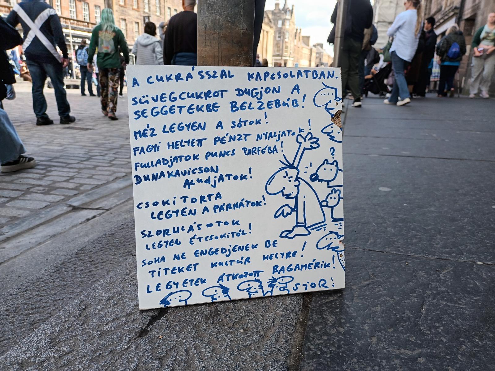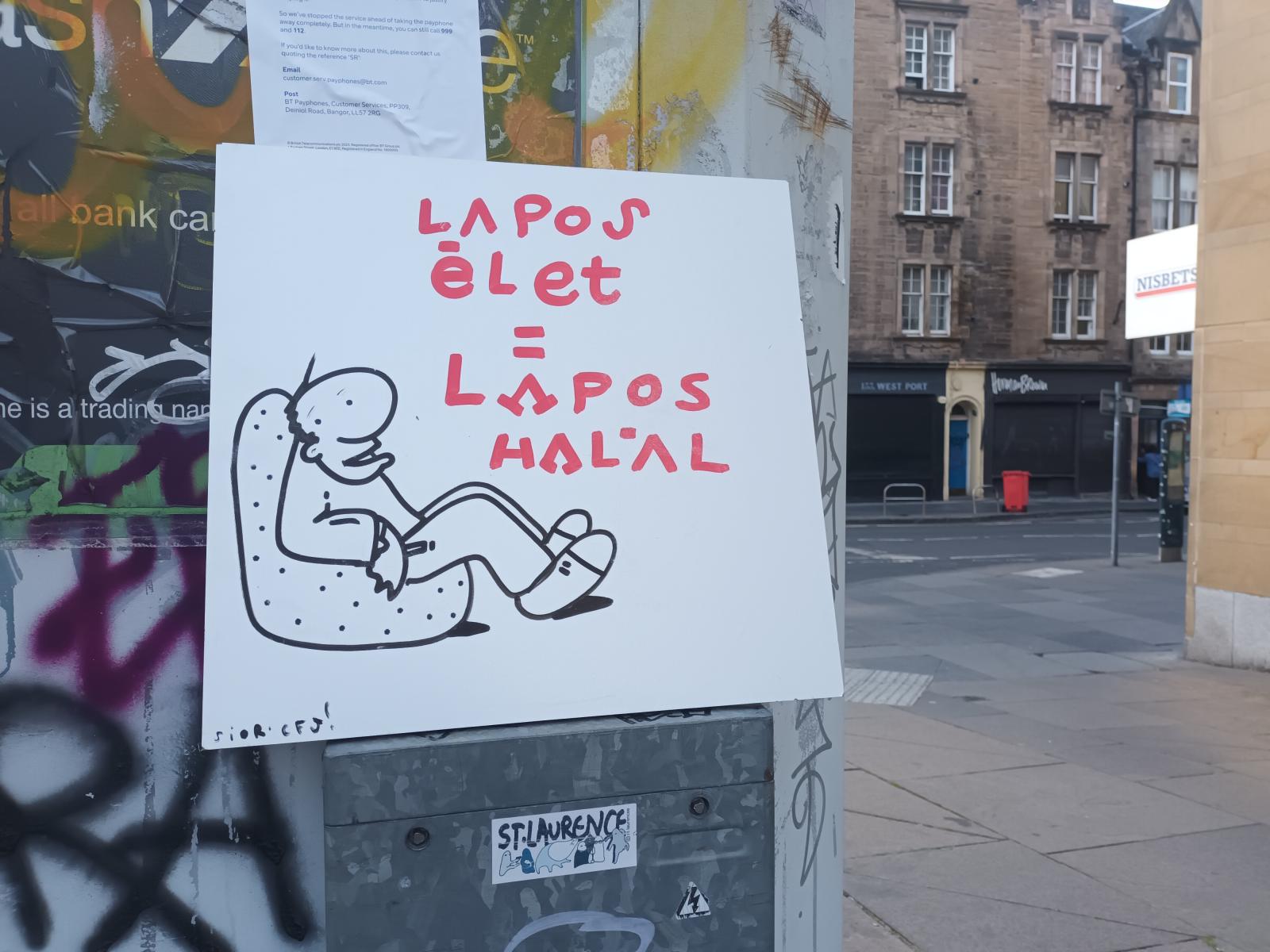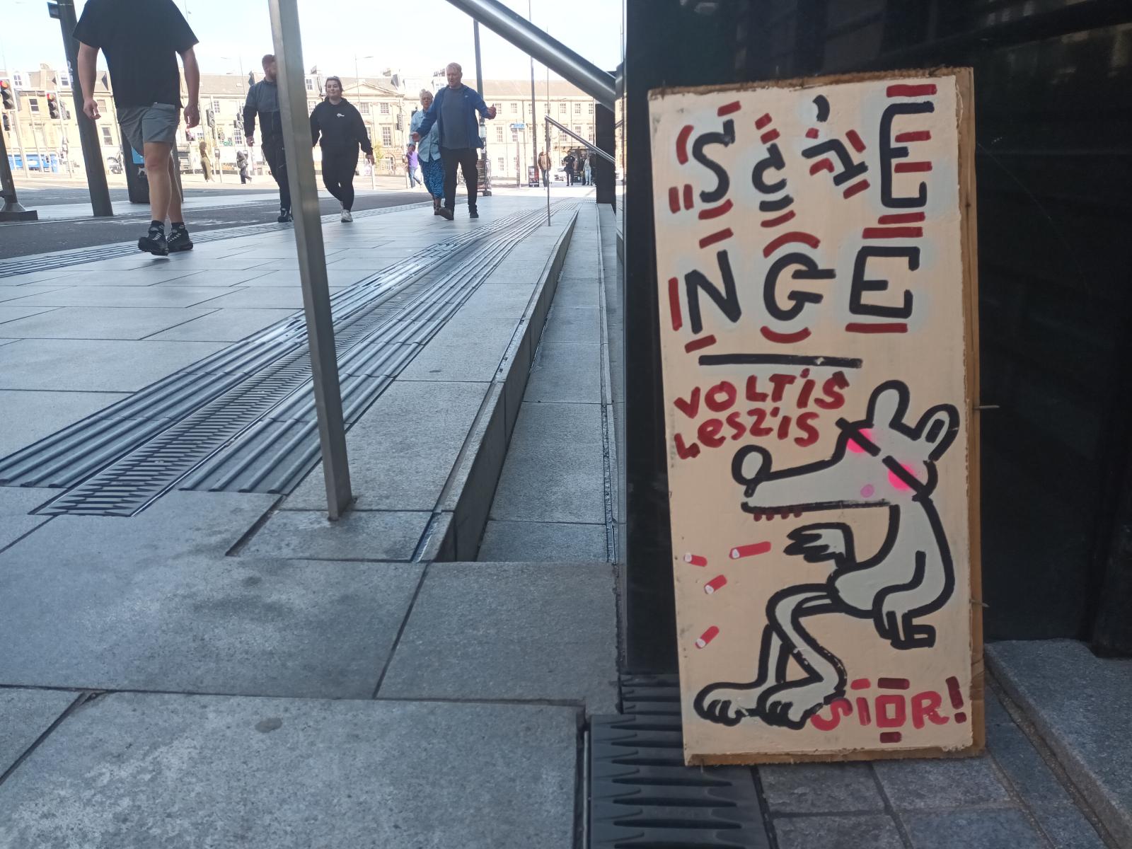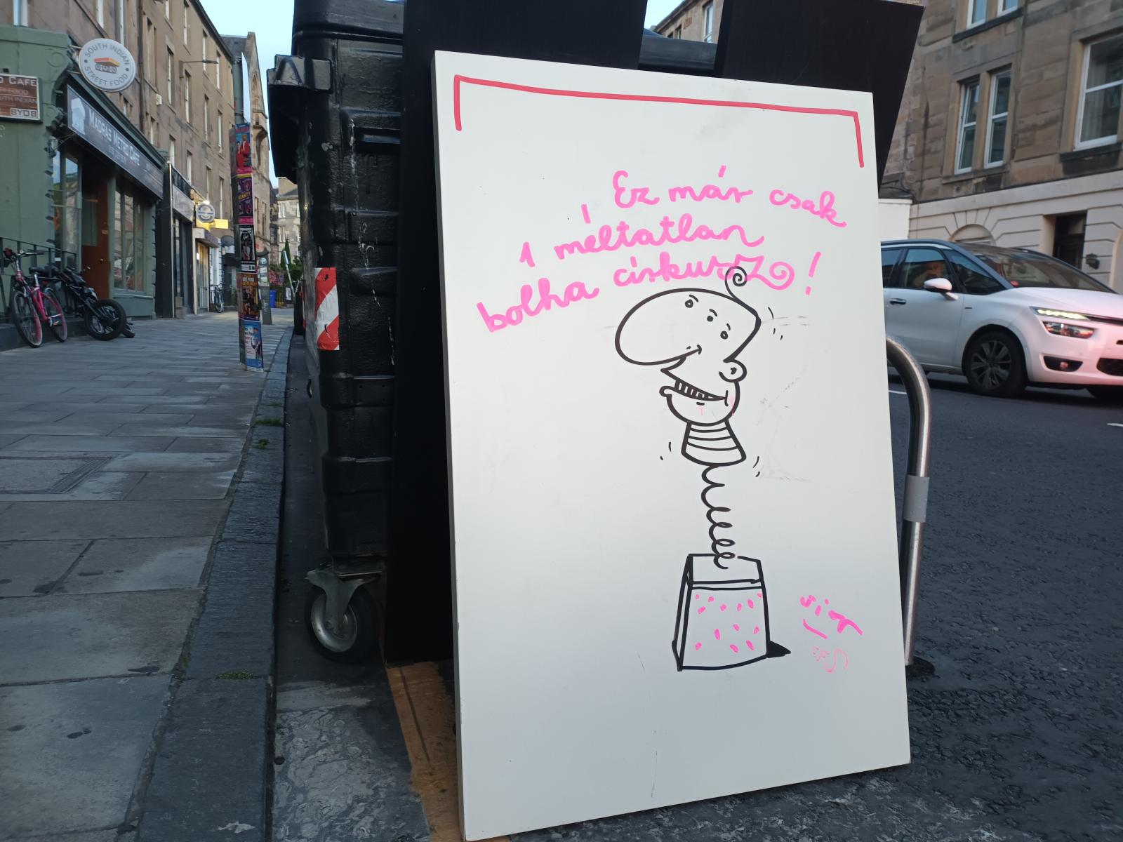 Fekete Valér Sior Skóciában élő karikaturista-graffitis szerzőnk történelem–francia szakos tanárként dolgozott itthon, közel egy évtizede ment el családjával Magyarországról. Amikor éppen nem az ügyfélköre megbízását teljesíti kertben, ház körül, akkor rajzol. Figyeli a közéletet, a politikát, és ami minderről eszébe jut, abból alkotás születik filccel, spray-vel, papíron, falon, deszkán.