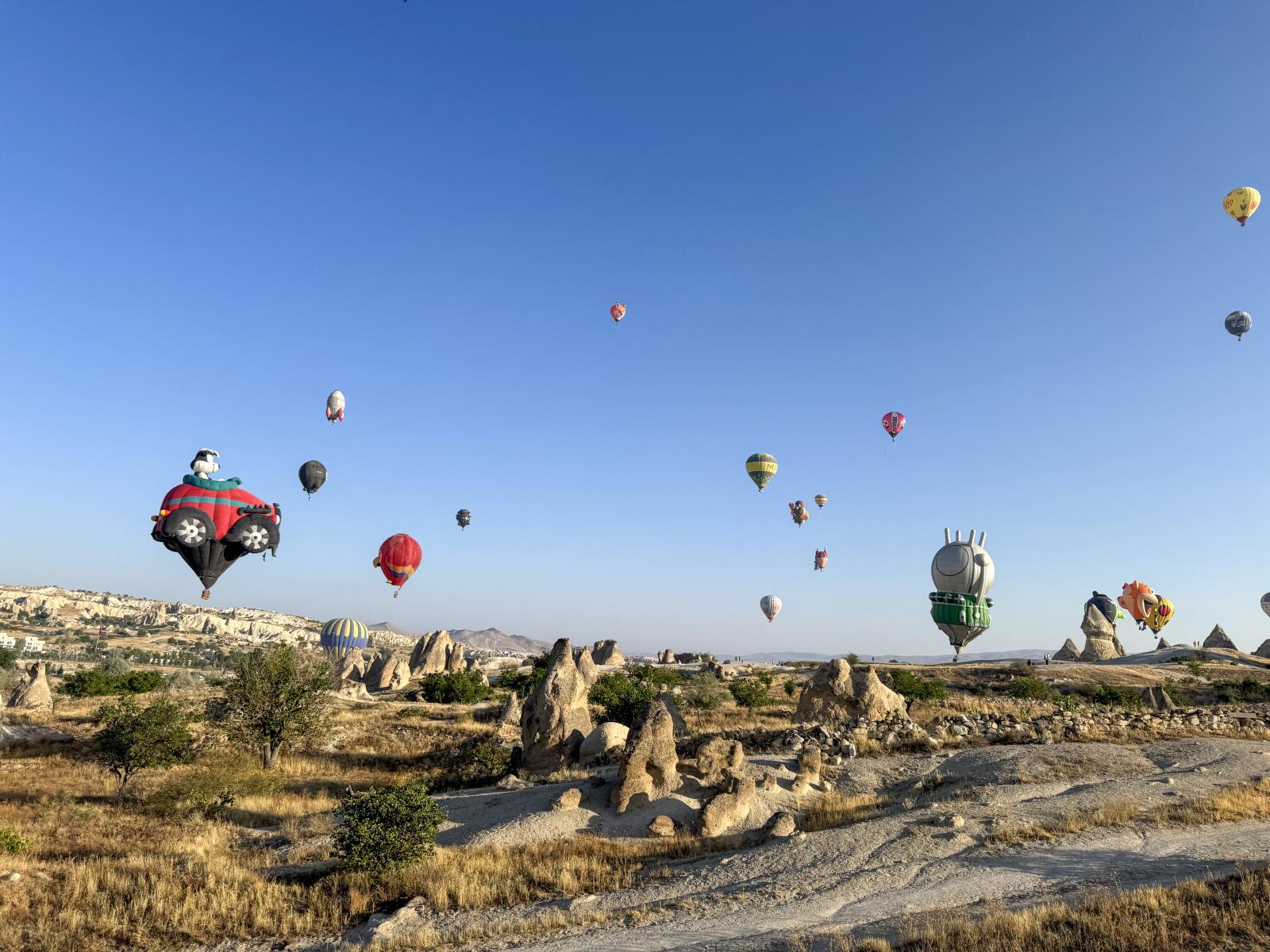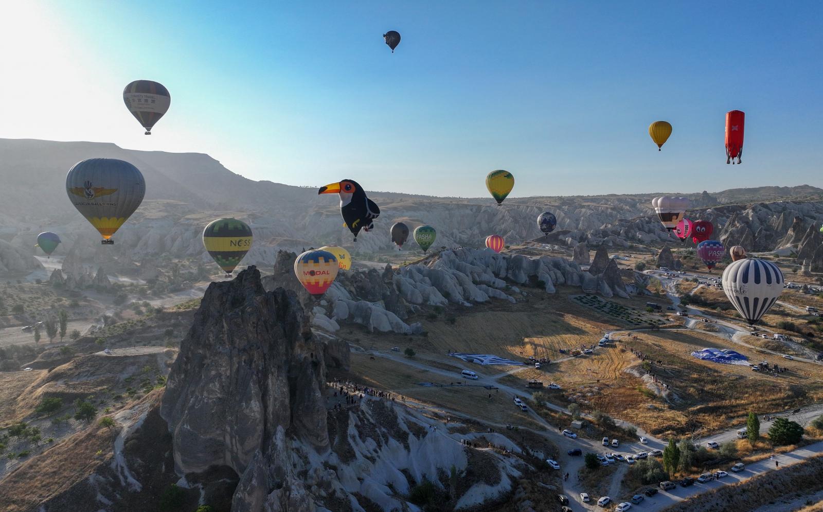 A törökországi Kappadókiában, Nevşehir tartományban négy napon át 38 különleges formájú hőlégballon emelkedett a magasba 27 különböző országból, színes forgataggá varázsolva a tündérkéményeknek nevezett sziklaalakzatok feletti égboltot.