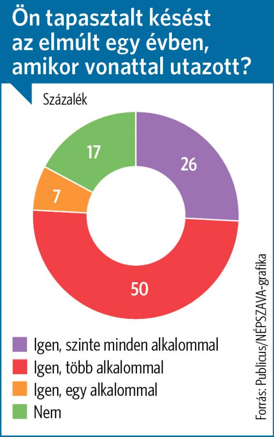 A lapunknak készített, augusztus eleji, reprezentatív Publicus-felmérés szerint azok közül, akik legalább néhány havonta szoktak vonaton utazni, minden második ember azt mondta, elégedett vagy inkább elégedett a MÁV szolgáltatásaival, 47 százalék pedig inkább elégedetlen.
