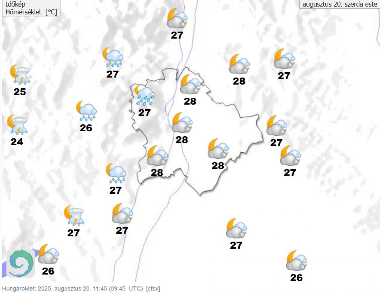 Az Időkép előrejelzése szerint a tűzijáték idején gyengén felhős égbolt várható.