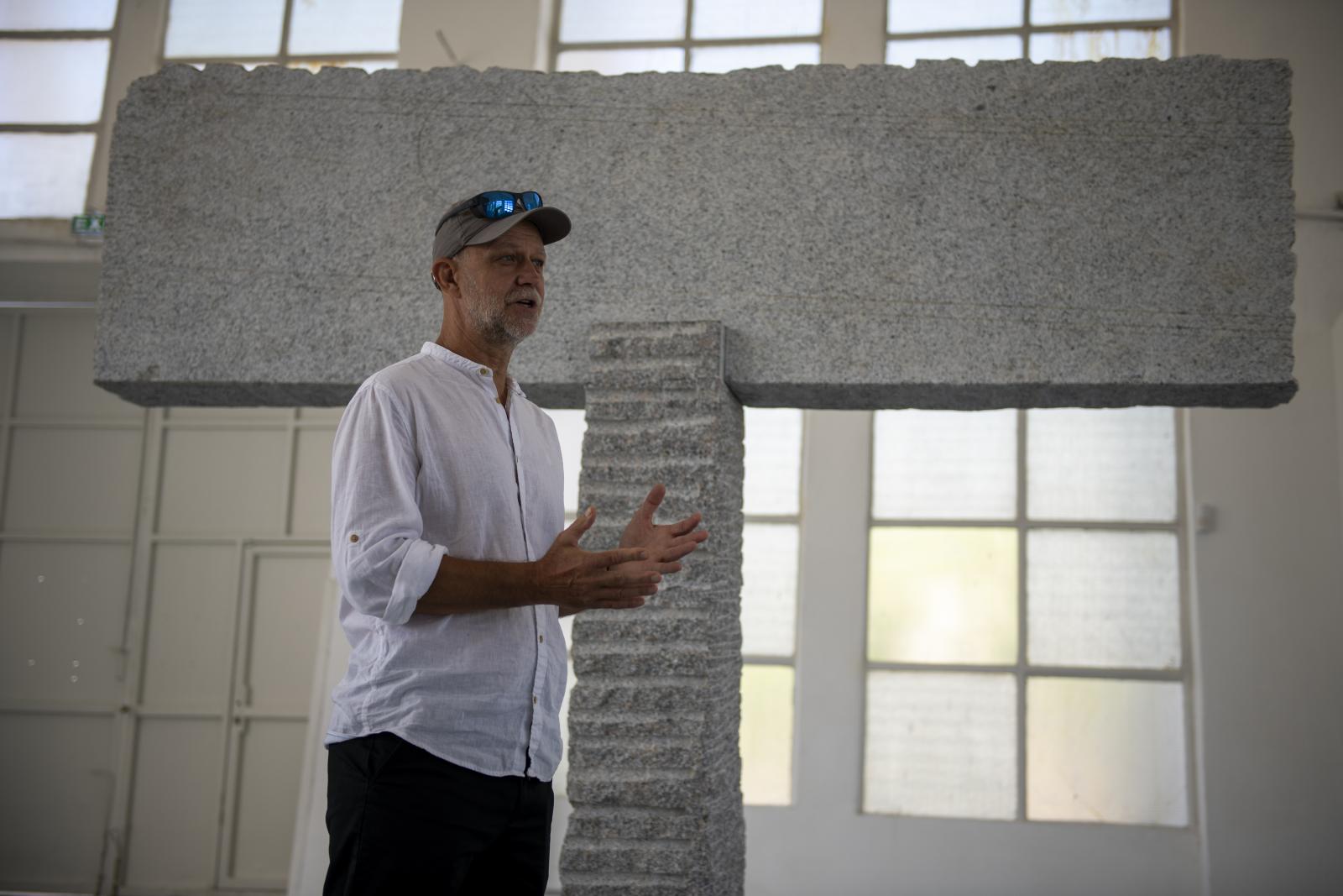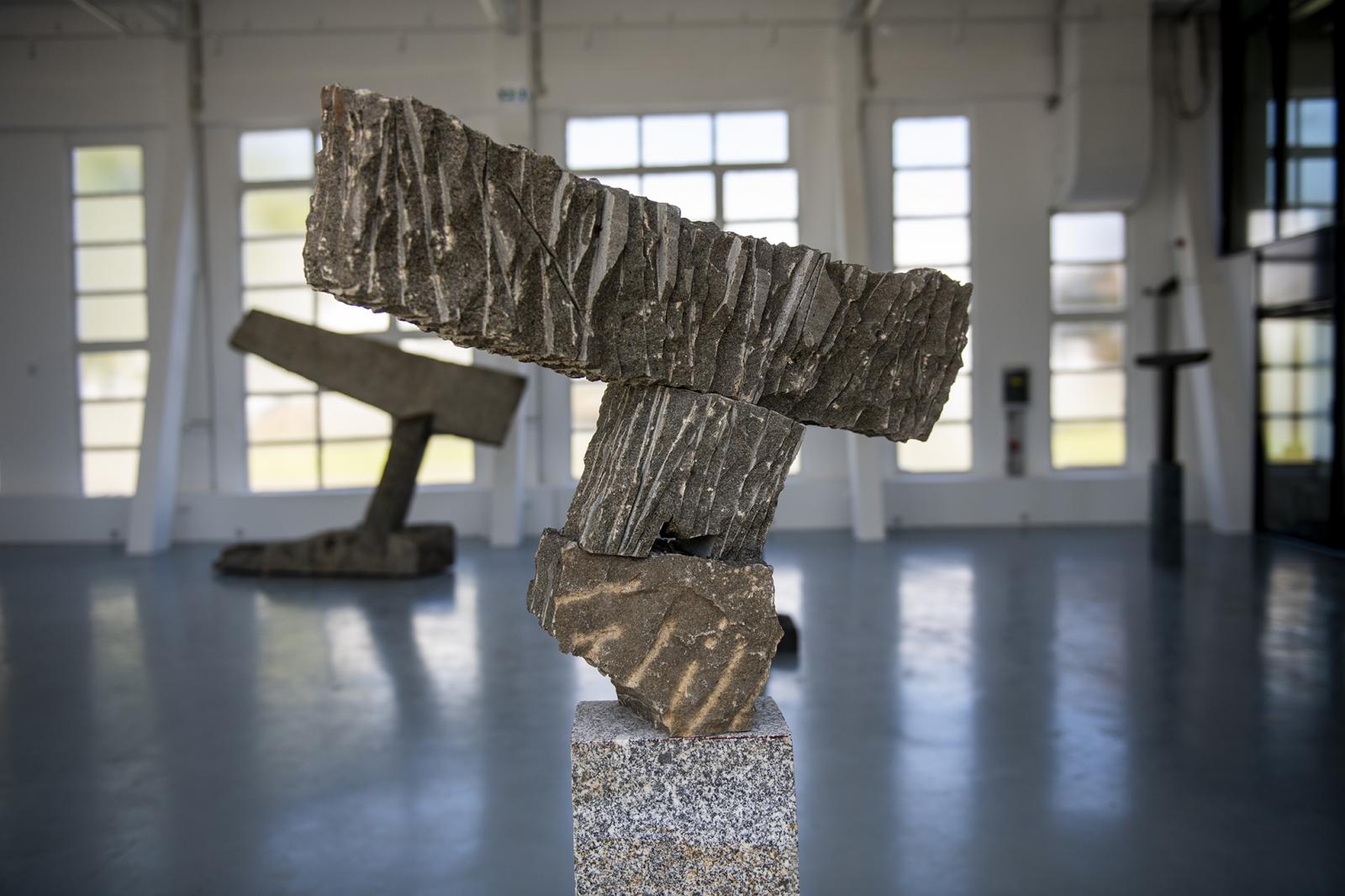 – A szobor sosem magányos, az mindig egy kulturális térben áll, és megszólítja a befogadót és a közösséget – mondja Mohácsi András, miközben a nagy méretű kőtömbökből összerakott absztrakt szobrait nézzük, és járjuk körbe a Kahan Art Space Buda nevű kiállítótérben rendezett kiállításán. A művek jól passzolnak a nagy belmagasságú térbe. Hófehér falai és a széles ablakokból beáradó fény még inkább kiemelik a szobrok robusztus voltát, melyek magára a térre is kihatnak. A művek pedig az alkotói folyamatról is mesélnek, hiszen jól látható, miként illeszkednek egymáshoz az egyes kőlapok, melyeken kivehetők a véső- és fúrónyomok is.