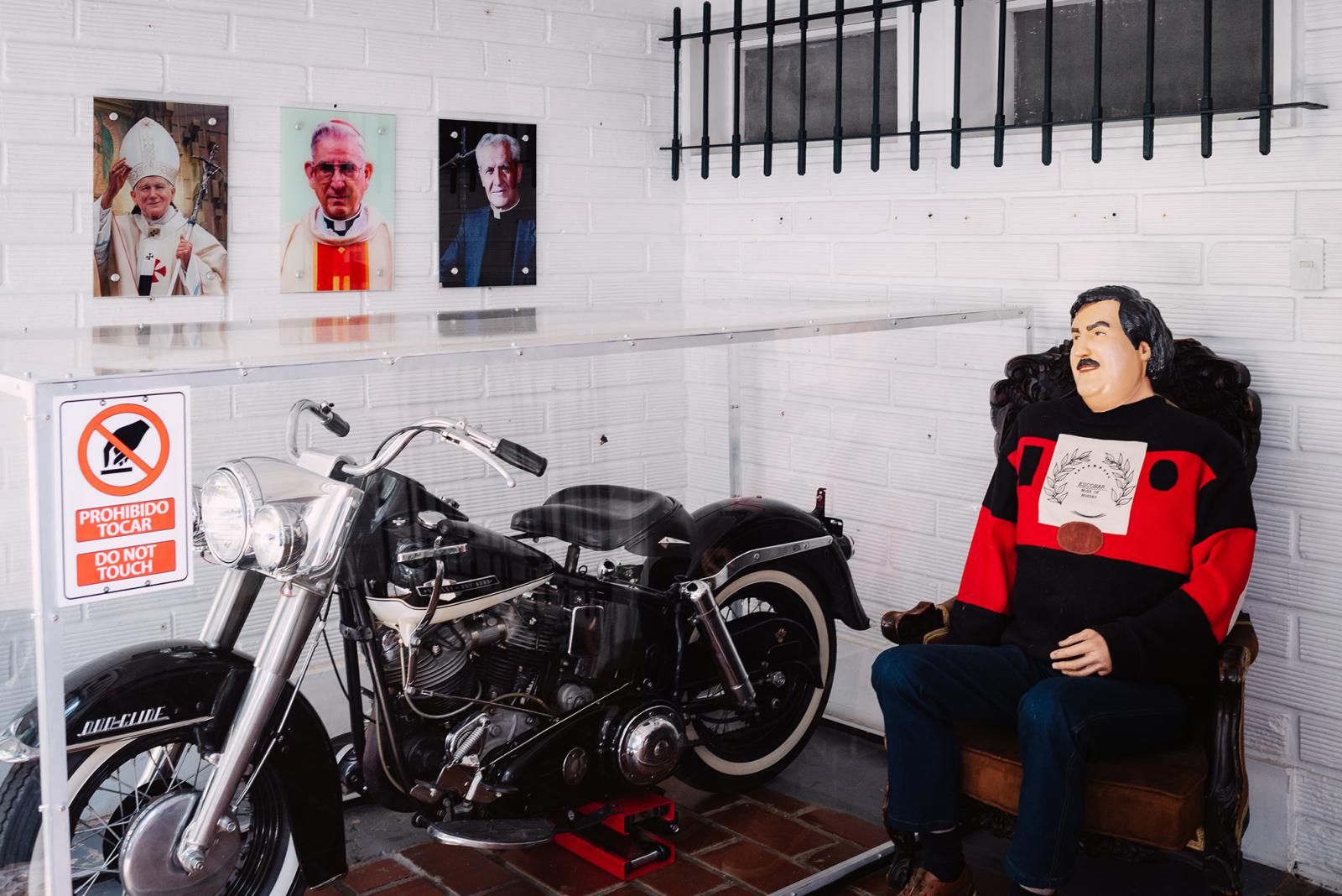 Napunk utolsó állomása a Roberto Escobarral való találkozás a múzeumként is működő saját házában. (A helyet a városvezetés egy évvel később, 2024-ben ugyan bezáratta, de az Escobar családot sem kell félteni: azóta nyílt egy gasztronómiai és kulturális kiállítás a városban, és a hátsó ajtón ma elérhető egy még nagyobb tárlat, már ha az ember tudja, kit kell hívni.) Tőlünk úgy 10 000 forintot kérnek el a belépésért, ehhez viszont idegenvezető is jár, aki helyenként határozott kísérletet tesz arra, hogy tompítsa/elkenje Escobar történelmi felelősségét a szervezett bűnözés Kolumbiára gyakorolt hatásairól. A néhány teremből álló tárlaton számos egyedülálló tárgyi hagyatékot lehet megtekinteni, köztük Escobar gyermekkori fényképeit, a drogbárót és Al Caponét egymás mellé ültető festményt, a kartell korábbi gépjárműit és egy autóból kivett, golyónyomokkal tarkított plexit, amely lövöldözésről tanúskodik.