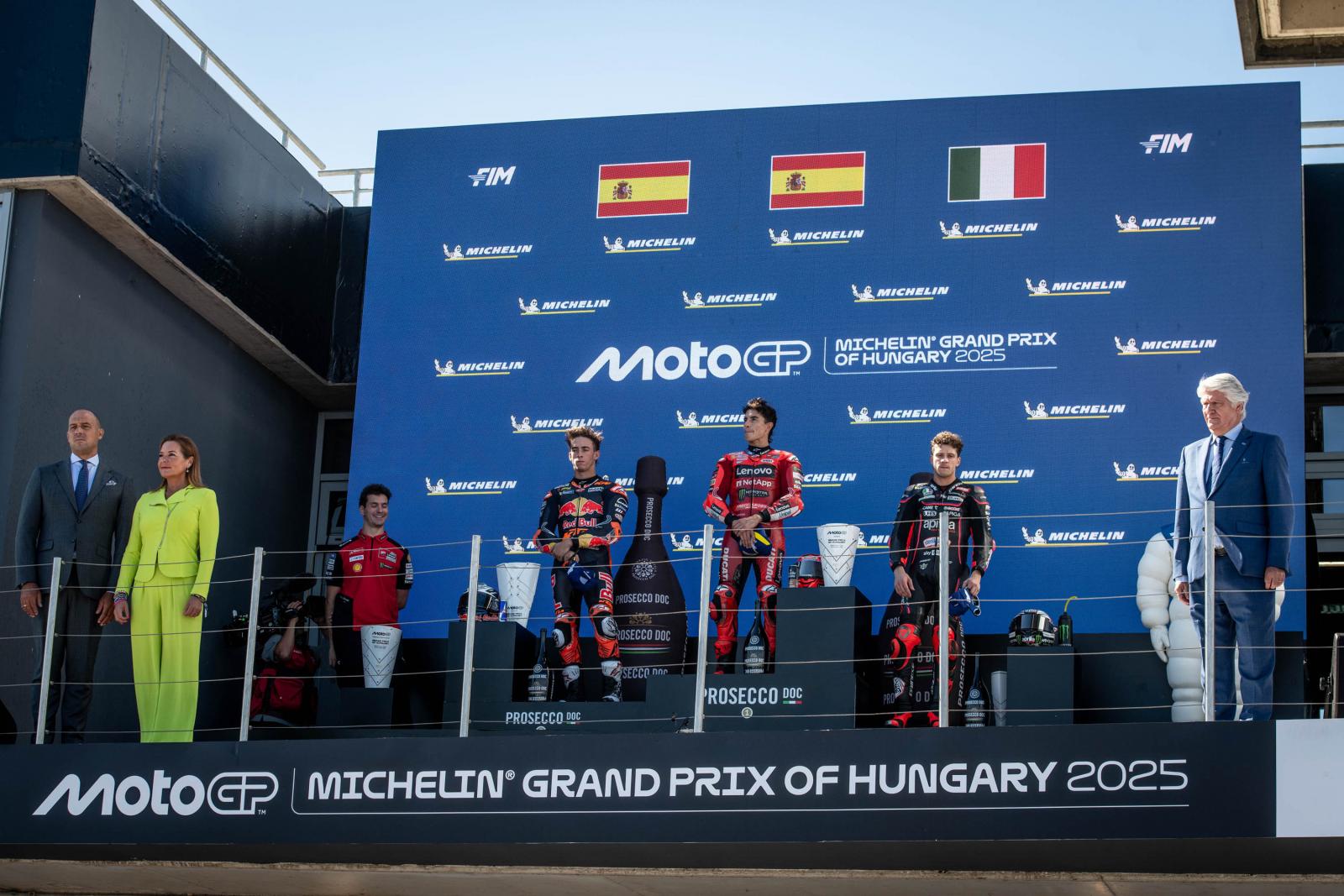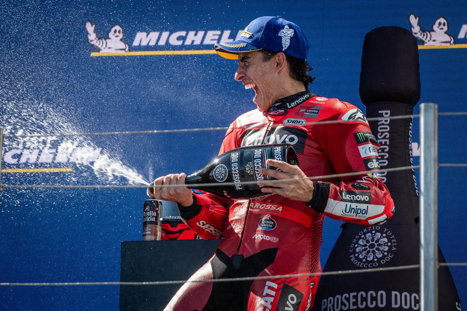 Az összetettben is az élen álló 32 éves kiválóság így sorozatban hetedik futamgyőzelmét aratta a MotoGP-ben, sőt, egymás után hetedik alkalommal duplázott egy hétvégén, mivel szombaton a sprintversenyt is megnyerte Balatonfőkajáron. Mögötte honfitársa, a KTM-mel versenyző Pedro Acosta lett a második, míg az olasz Marco Bezzecchi (Aprilia) a harmadik.