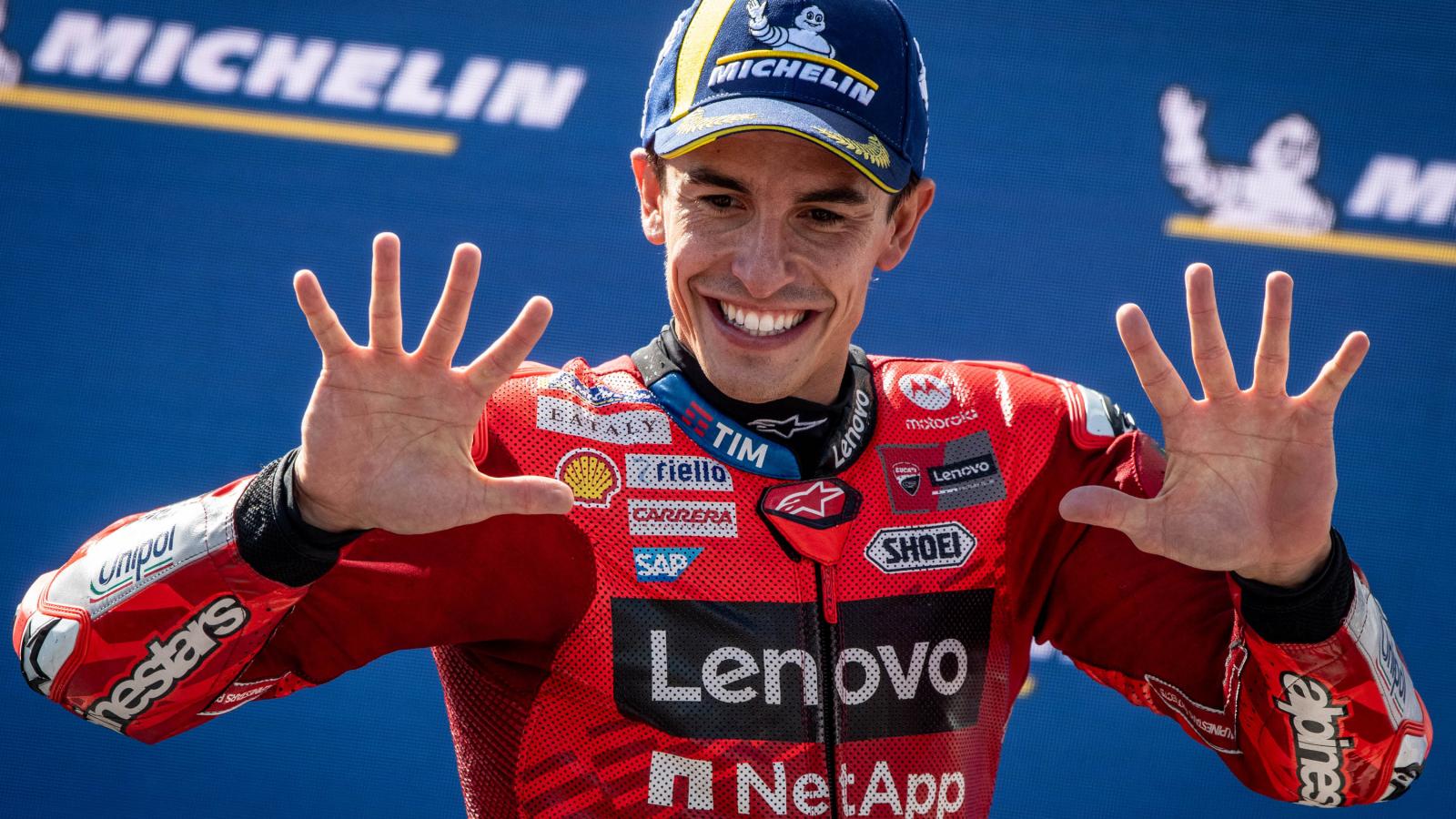 Márqueznek ez az idei 10. futamgyőzelme, és mivel még nyolc forduló hátravan az idényből, könnyen előfordulhat, hogy megdönti majd a saját rekordját, amely 13 siker egy szezonban. – Nem fogok hazudni, ma könnyű napom volt, eltekintve az első két kanyarban történtektől. Minden a terveink szerint alakult, végig jó tempót tudtam motorozni. Az nem normális, ha valaki minden hétvégén sprint- és főversenyeket nyer, előbb utóbb valamelyik ellenfelünk nálunk is gyorsabb lesz, ezért sokszor jobb a második- harmadik hely, mint pont nélkül maradni - mondta a futam után Márquez, aki szerint a második kanyarban ő hibázott, mert mindig a hátrébb lévőnek kell az előtte lévőre figyelnie, ugyanakkor arra számított, hogy Bezzecchinek nem fog ennyire jól sikerülni a gyorsítás.