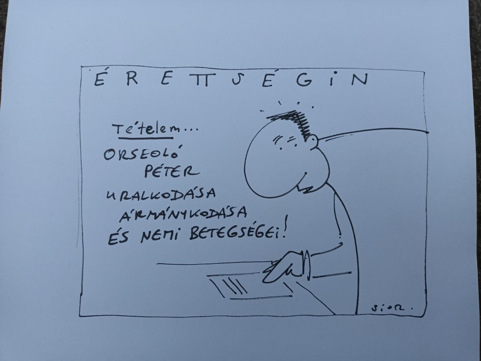 Fekete Valér Sior Skóciában élő karikaturista-graffitis szerzőnk történelem–francia szakos tanárként dolgozott itthon, közel egy évtizede ment el családjával Magyarországról. Amikor éppen nem az ügyfélköre megbízását teljesíti kertben, ház körül, akkor rajzol. Figyeli a közéletet, a politikát, és ami minderről eszébe jut, abból alkotás születik filccel, spray-jel, papíron, falon, deszkán.