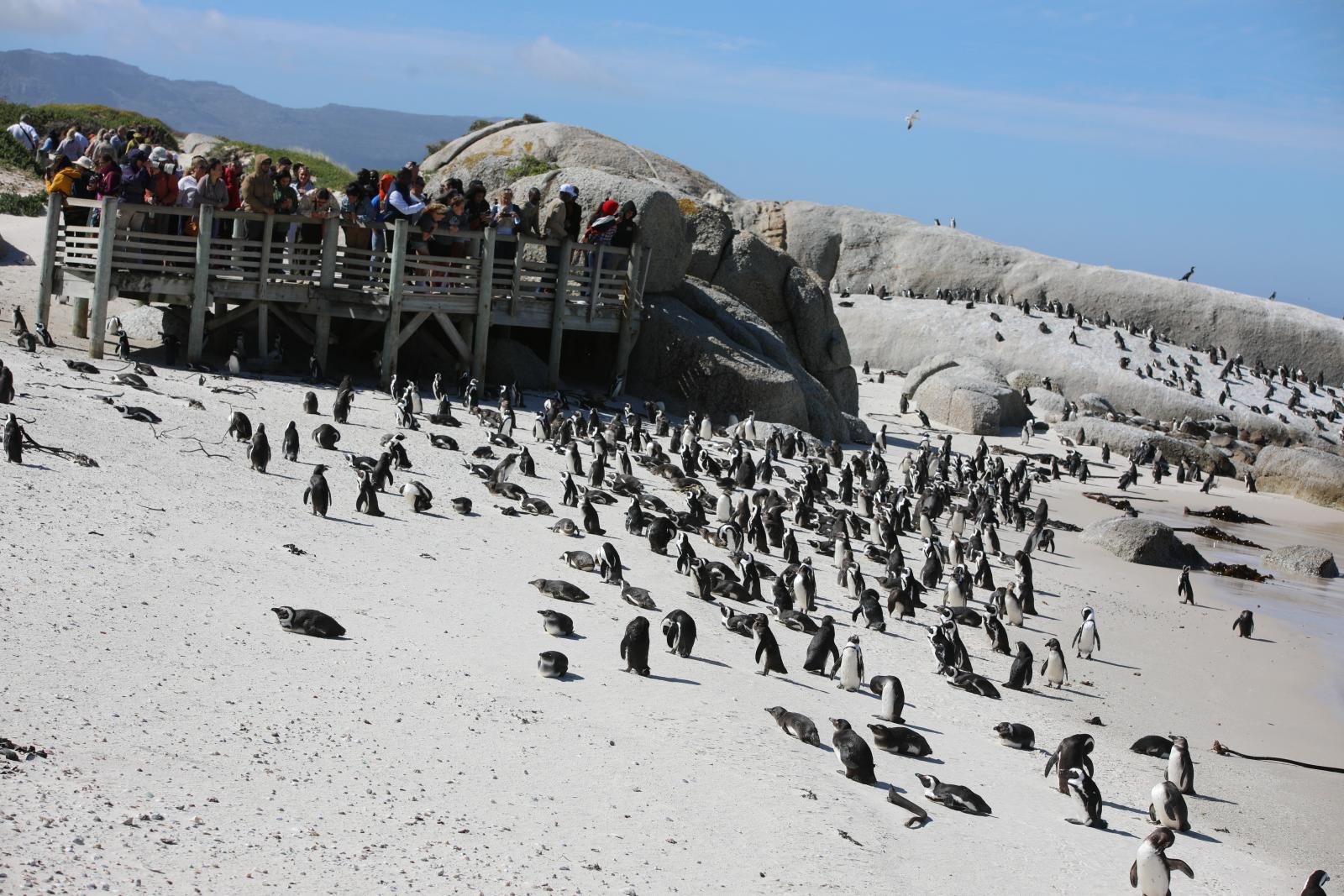 Hogy ez ne következzen be ismét, Boulders Beach ma már a Table Mountain National Park része. A halászatot ezen a partszakaszon szigorúan szabályozzák, hogy ne fogják ki a madarak elől a szardíniát, szardellát és tintahalakat. A pingvinekhez pedig csak és kizárólag egy néhány ezer forintos belépődíj ellenében, fémkapukon keresztül lehet bemenni. Innen két fapallós út vezet a kristálytiszta, de minden évszakban jéghideg óceánban fürdőző, vagy a parton totyogó, esetleg fészkelő pingvinek közé. Hozzájuk érni természetesen nem lehet, még akkor sem, ha egy-két példány feltéved erre a fapallós útra, mert állítólag csípnek. A turistáknak etetni sem szabad őket, velük együtt fürdőzni pedig pláne nem. De azt csendben lehet akár órákig is lehet figyelni, ahogyan élik az életüket, pancsolnak, halásznak, tojásokat költenek, vagy a szürkésbarna, bolyhos kis fiókáikat nevelik. Az ajándékboltban egy-egy példányt akár örökbe is lehet fogadni – igaz, hazavinni nem lehet őket, de támogatni igen, hogy remélhetőleg évtizedekkel később az unokáink is lássanak majd itt pingvineket, ha elég szerencsések.