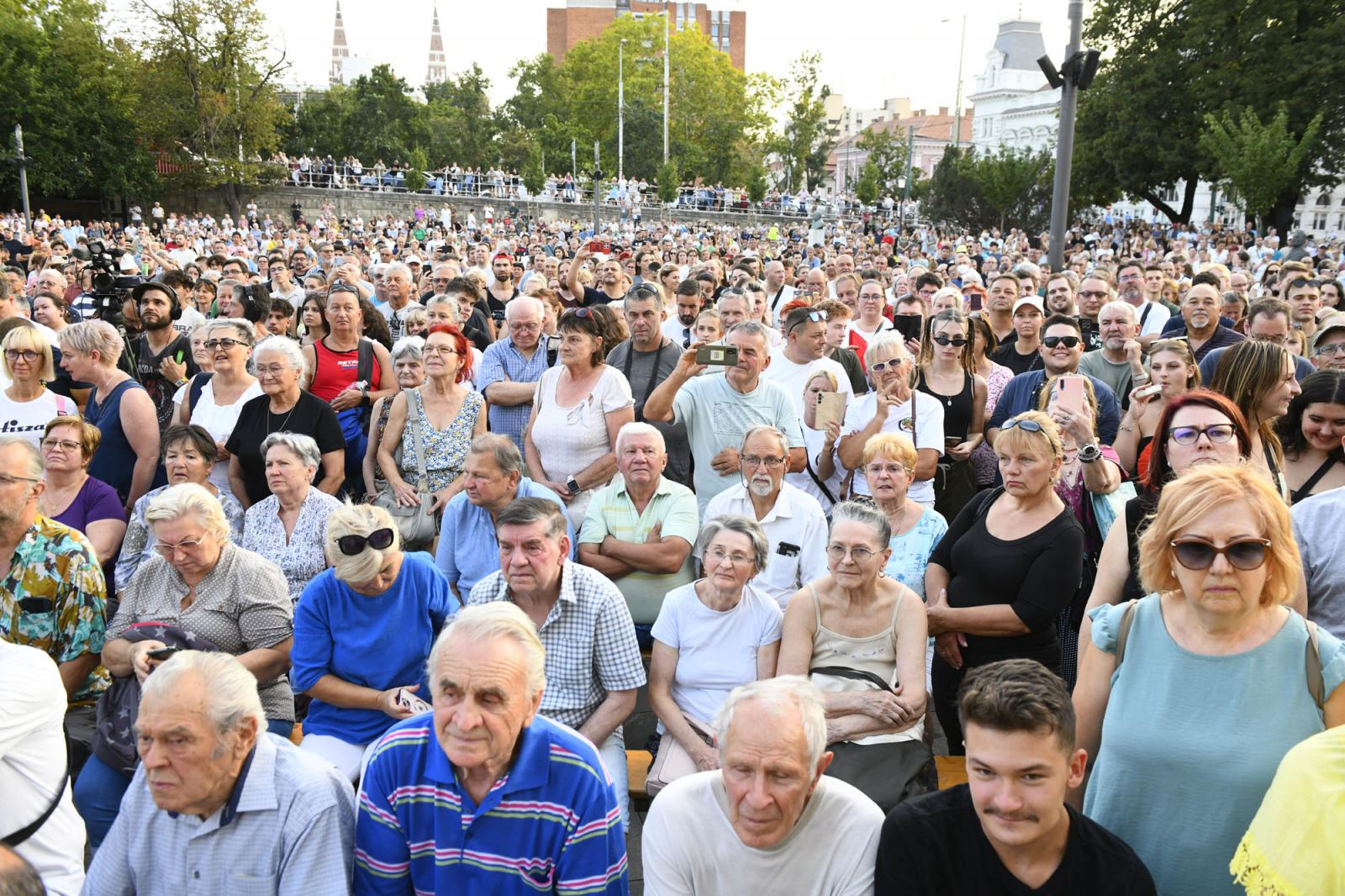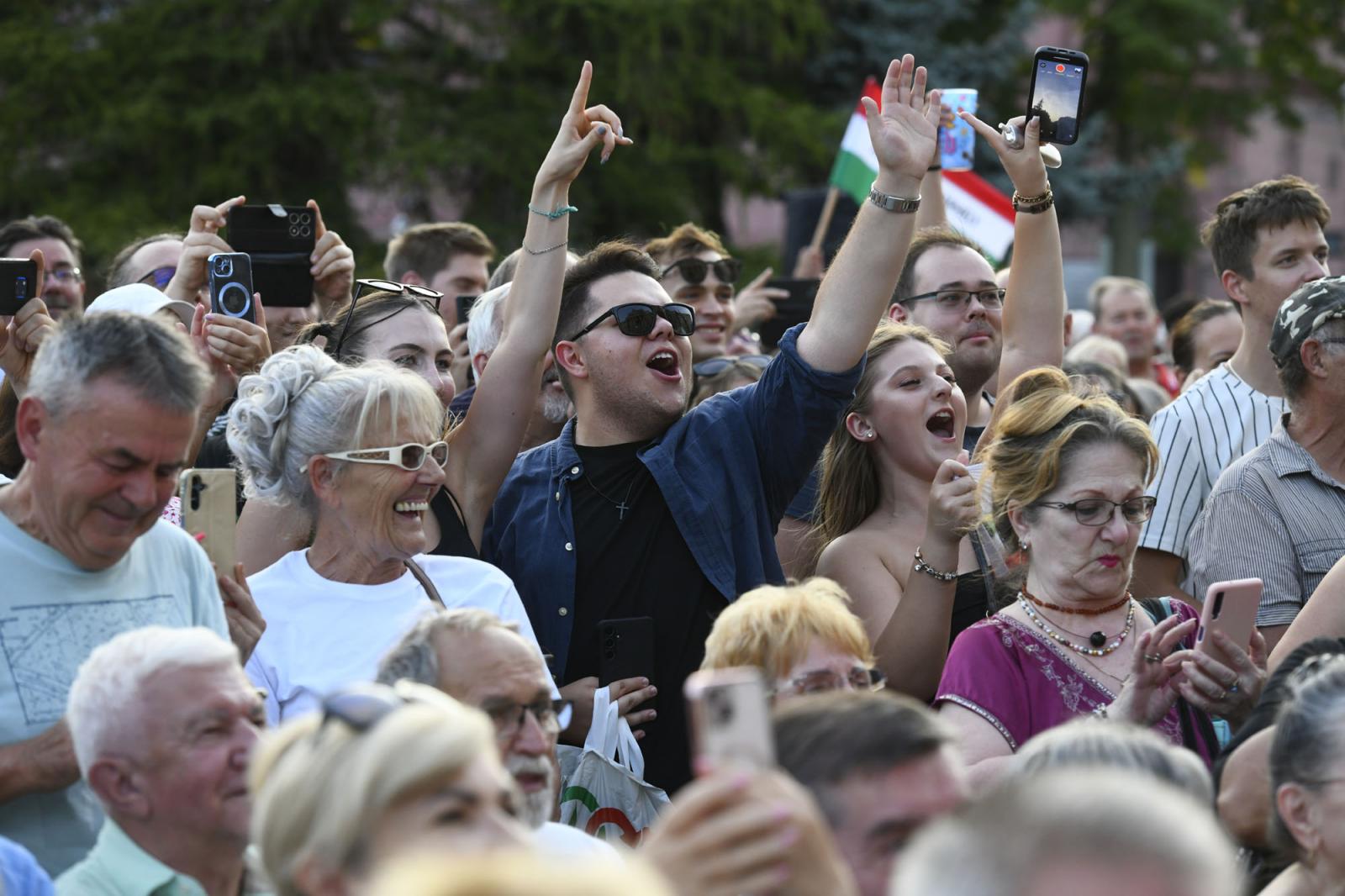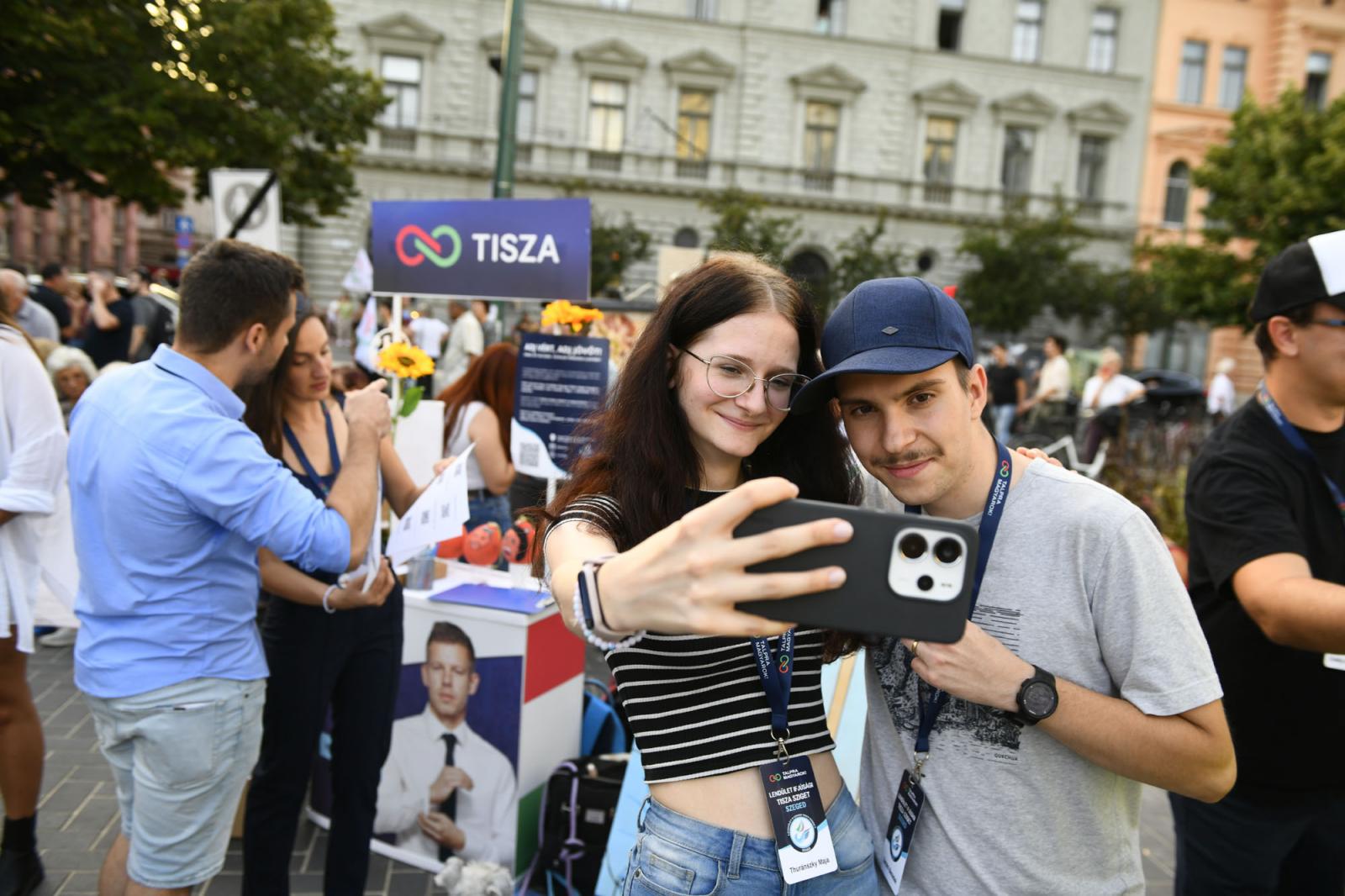 Annak ellenére, hogy a levegő még mindig bőven harminc fok felett van, sokan – fiatalok, idősek - kíváncsiak a Tisza Párt elnökének beszédére. A betonplaccon általános iskolás gyerekek sorakoznak. - Engem érdekelt, hogy mit mond élőben, mert eddig csak az Instán láttam – mondja az egyik fiú. Elárulja, kora ellenére követi a politikát, leginkább Magyar Péter szerepléseit figyeli, mert úgy érzi, ebben a rendszerben nem sok esélye van.