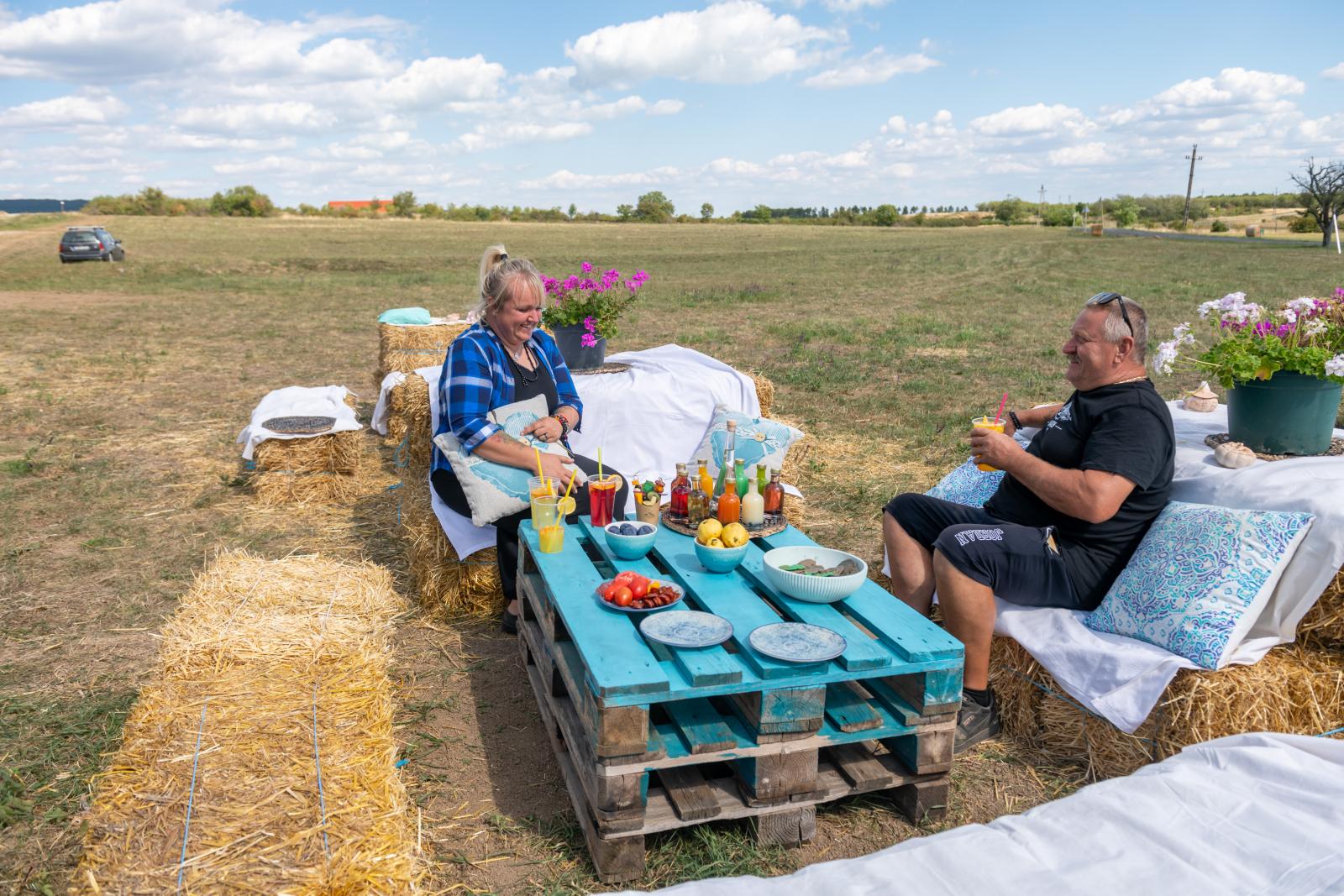– Ezeknek a szörpöknek az a különlegessége, hogy ásvány ázik bennük fél éven keresztül – kínál bennünket Enikő előbb a kaktuszfügés, majd a tihanyi levendulás limonádéjából, aminek egyáltalán nincs „szappanos” mellékíze, se neonszíne. Merthogy csakis természetes hozzávalóból készül, mint a spirulinás-medvehagymás, vagy a fekete retekkel ízesített házi ropogós, amit (aranykalászos) gazdasszonyunk vászolyi lisztből süt. A bambusznyársakra sorjázott, ínycsiklandó házikolbász – amit Enikő a tulajdonostársával, Lővey Miklóssal saját kezűleg töltött –, a különféle sajtok, a friss paprika, paradicsom, uborka is mind háziak, frissek, akárcsak mellé a ropogós, kemencében sült zsemle. A közeljövőben kínálnak majd pizzát és pizzillát is (a tortilla és a pizza szerelemgyerekét), ami nekik jóval kevesebből kijön, mint egy Balaton-parti, 6000 forintos pizza. Nem is szeretnék az egekbe srófolni az árakat, mert ez a hely nem erről szól. Sokan a község honlapján is említett Sárkányvonalra is úgy tekintenek, mint PR-lehetőségre, hogyan lehetne ebből jó pénzt csinálni. Csakhogy ez leszűkítené azok körét, akik megengedhetnék maguknak, hogy idejöjjenek a testüket-lelküket táplálni. Emellett Enikőék a hely tisztaságára is ügyelnek – nemrég megkeresték őket egy párt aktivistái, akik ide szerettek volna rendezvényt szervezni, színpaddal, hangszórókkal, ám erre nemet mondtak. Amire válaszul rengeteg támadás, bejelentés, majd ellenőrzés érkezett, csakhogy mindent szabályosan üzemeltetnek, semmi kifogásolhatót nem találtak.