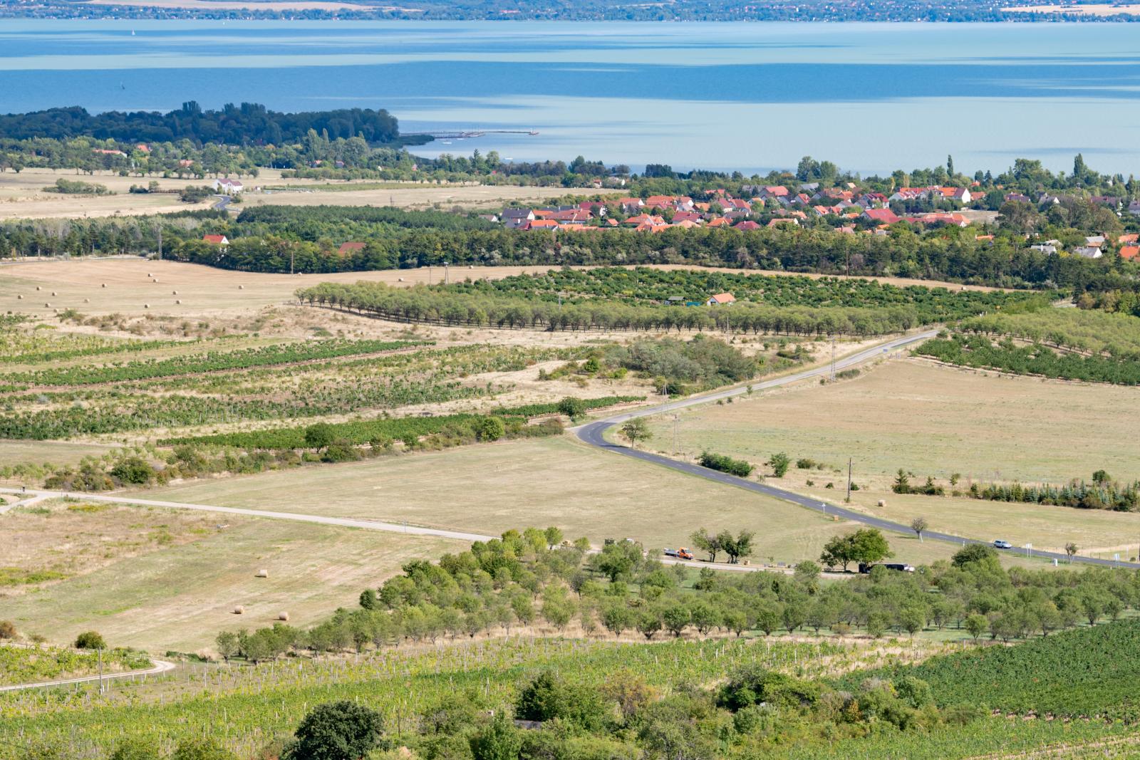 Pár perces úttal még felmegyünk a hajdan volt tűzhányó Hegyestűre, hogy fentről is megnézzük a Skanzen PanorámaPlaccot, és a kilátás lélegzetelállító: távolban az azúrkék Balatonnal, mellettünk Gulács, Csobánc, a Szigliget hármasa, a Szent György-hegy és a badacsonyi bazaltorgonák. A pazar panorámát itt milliós négyzetméterár fölött mérik, de egyelőre még bárki feljöhet ide, hogy ebben gyönyörködjön és töltődjön a hegy és a környék erős természeti energiájából. Az egyik présház kertjében még sárkányt is találtunk, méghozzá Süsüt, „akit” egy nagypapa az unokái örömére készített.