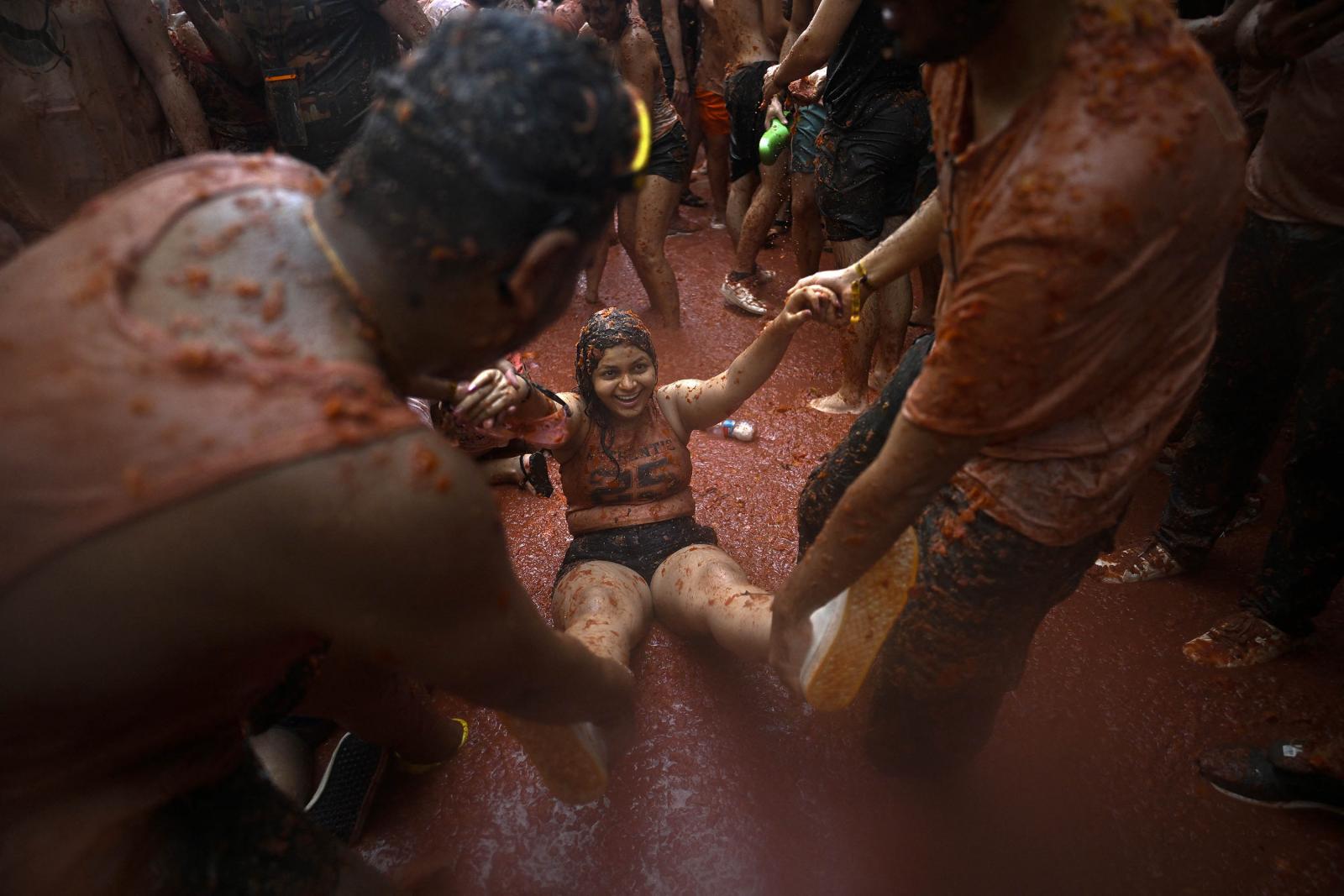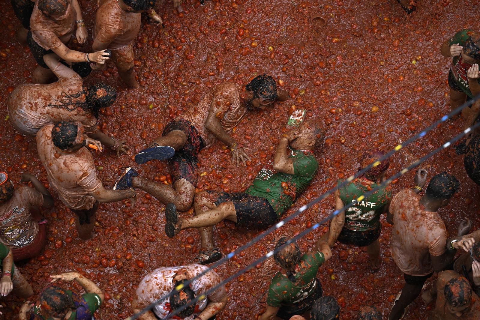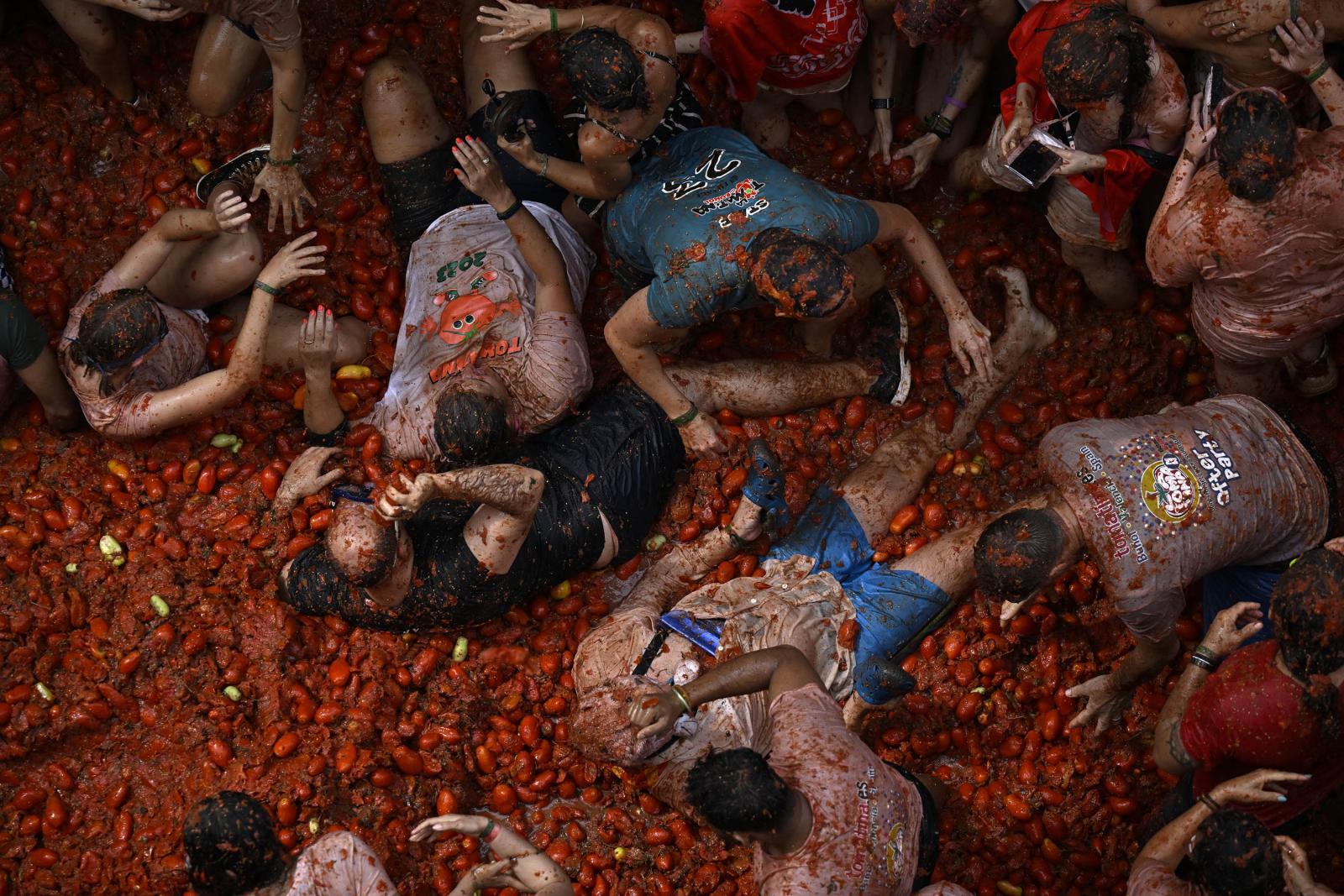 Minden augusztus utolsó szerdáján a Valencia tartománybeli Buñol városka utcái vörösre változnak: a La Tomatina fesztiválon több ezer résztvevő dobálja egymást összesen 150 tonnányi, csakis erre az eseményre termesztett, majd platós teherautókról osztogatott paradicsommal.