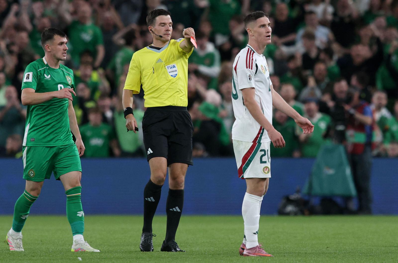 53. perc: O'Shea ellen törlesztett, rátartott az ír játékos lábára. Kiállítása miatt kedden a portugálok ellen sem játszhat.