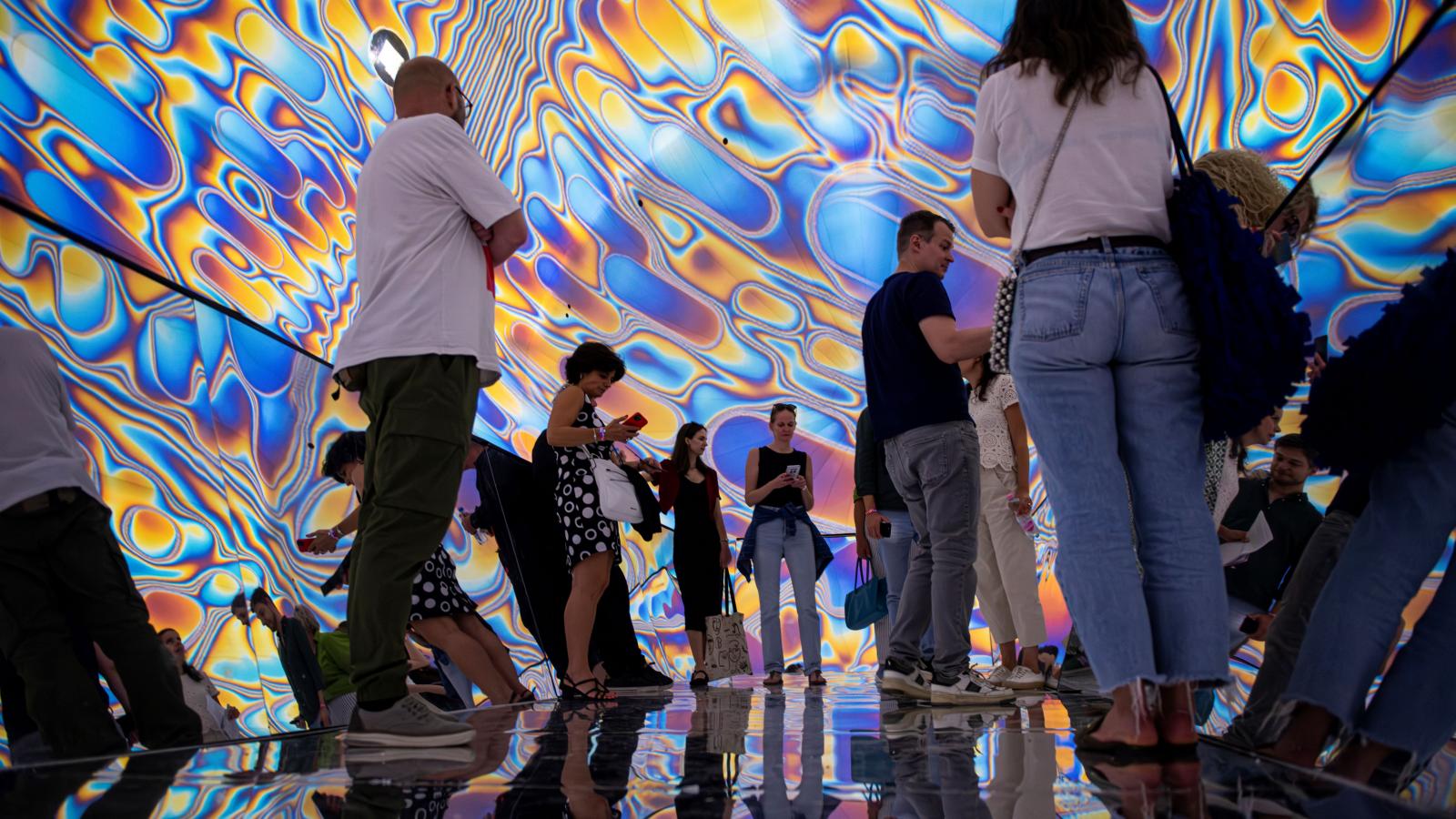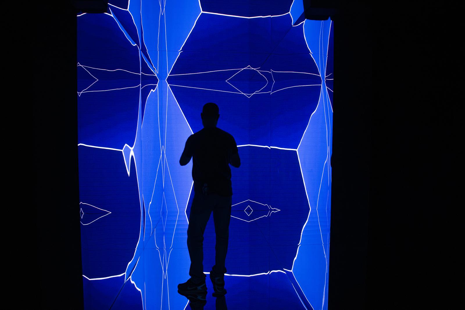 A több mint kétezer négyzetméteren bejárható kiállítás egyszerre látványos és elgondolkodtató, a fénnyel és hanggal operáló installációk ugyanis rávilágítanak arra, hogy nem az ember a világ közepe, léteznek más perspektívák is. Ez volt a célja Szalai Borbála és Bencsik Barnabás kurátoroknak, akik olyan műveket válogattak, melyek kizökkentik a nézőt a megszokott pozíciójából. A kiállítás „Több mint ember” címe is erre poszthumán gondolatiságra utal, vagyis arra, hogy napjainkra túl kell azon lépni, hogy az ember áll a világ közepén, hanem ő is csak része annak, hisz még számos élőlény él körülötte a baktériumoktól kezdve a legnagyobb emlősökig. Ennek a gondolatnak ágyaz meg a múzeum terének közepén látható óriási gömb, melynek felületén kaleidoszkópszerűen suhannak át motívumok, ami akkor kelt igazi, immerzív élményt, ha belépünk ebbe az építménybe, melyben a végtelen számú kavargó vonal között úgy érezhetjük magunkat, mintha egy virtuális valóságba kerültünk volna. Vicsek Viktor és Rodrigo Guzman ezen alkotásában az ember tényleg kizökken a megszokott szemszögéből. – A kiállítás művei a szándékaink szerint érzékileg hozzák létre azt az állapotot, hogy az ember kibillenjen, és hajlamossá váljon arra, hogy elfogadjon más nézőpontokat és más logikát is – mondta a Visszhangnak Bencsik Barnabás.