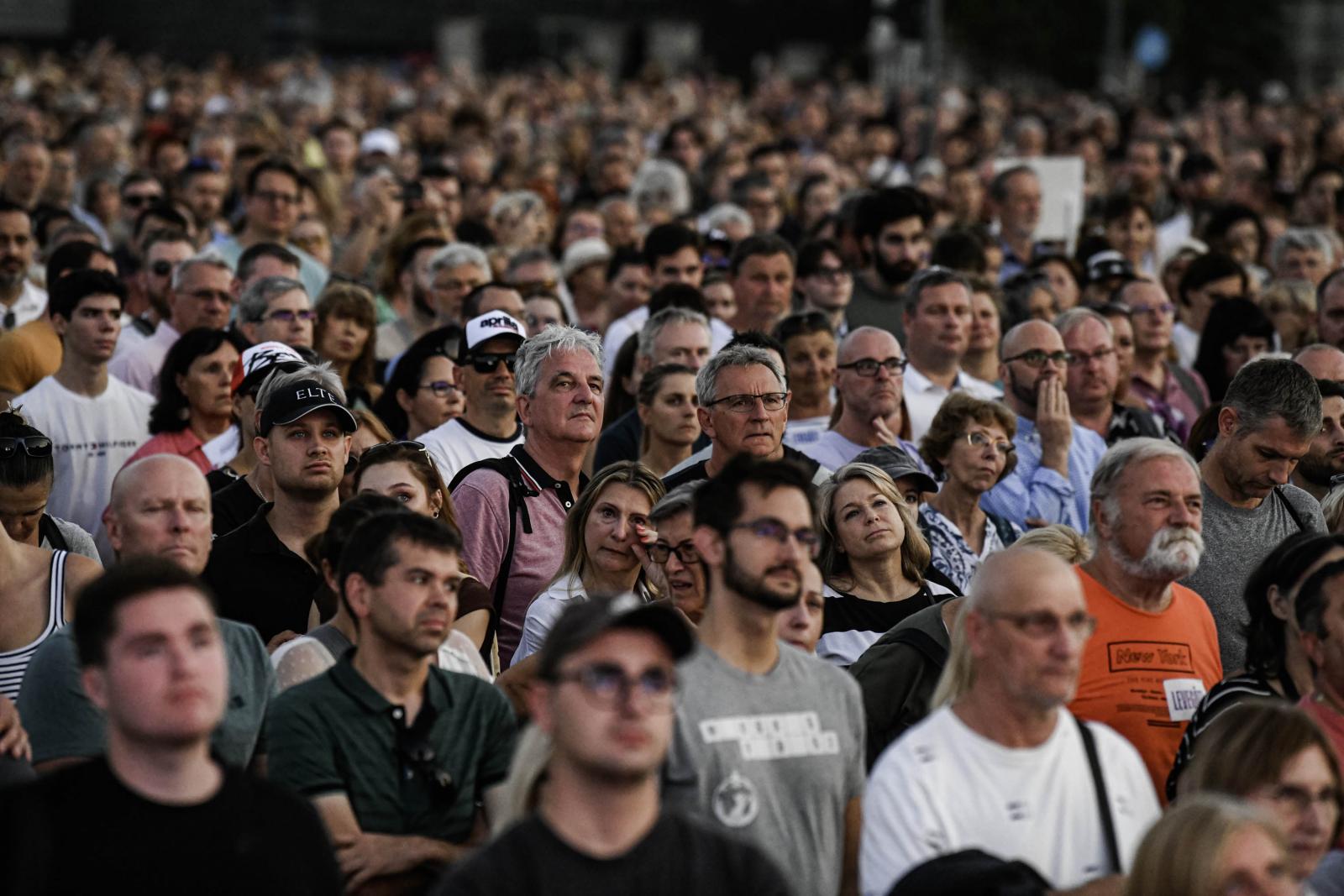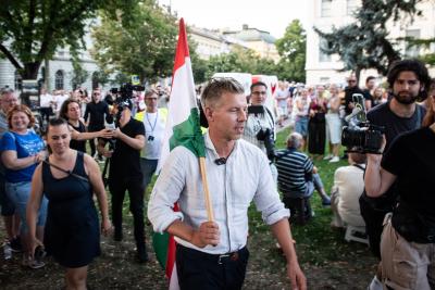 A korábbi momentumos influenszer beszéde alatt felharsant a tömegben a „Mocskos Fidesz” rigmus.