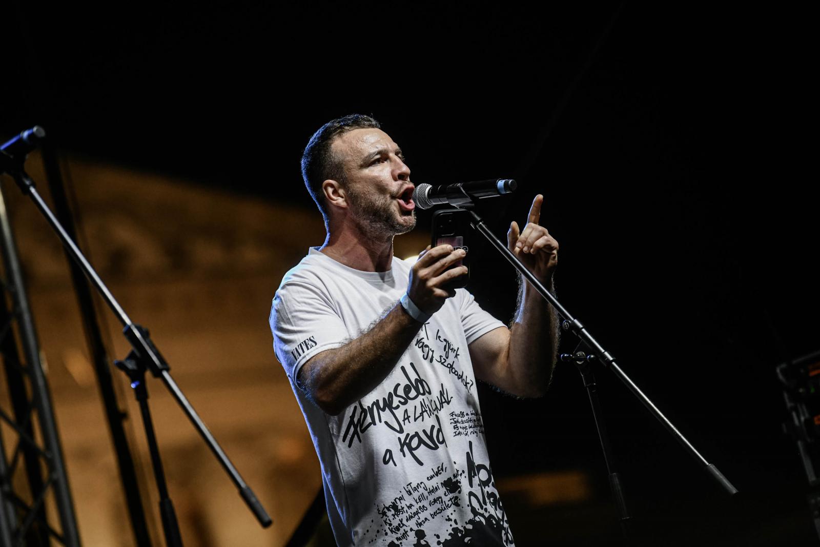 A színész szintén felidézte a közpénzből futtatott gyűlöletkampányokat, egyéb propagandatermékeket, például a TV2 műsorait. Ezt nem szabad hagyni, felül kell emelkedni a pártpolitikán és meglátni a másikban az embert - mondta. „Beszélgessünk, mosolyogjunk egymásra, és segítsünk egymáson. Békét, empátiát, új Magyarországot” - fogalmazott.