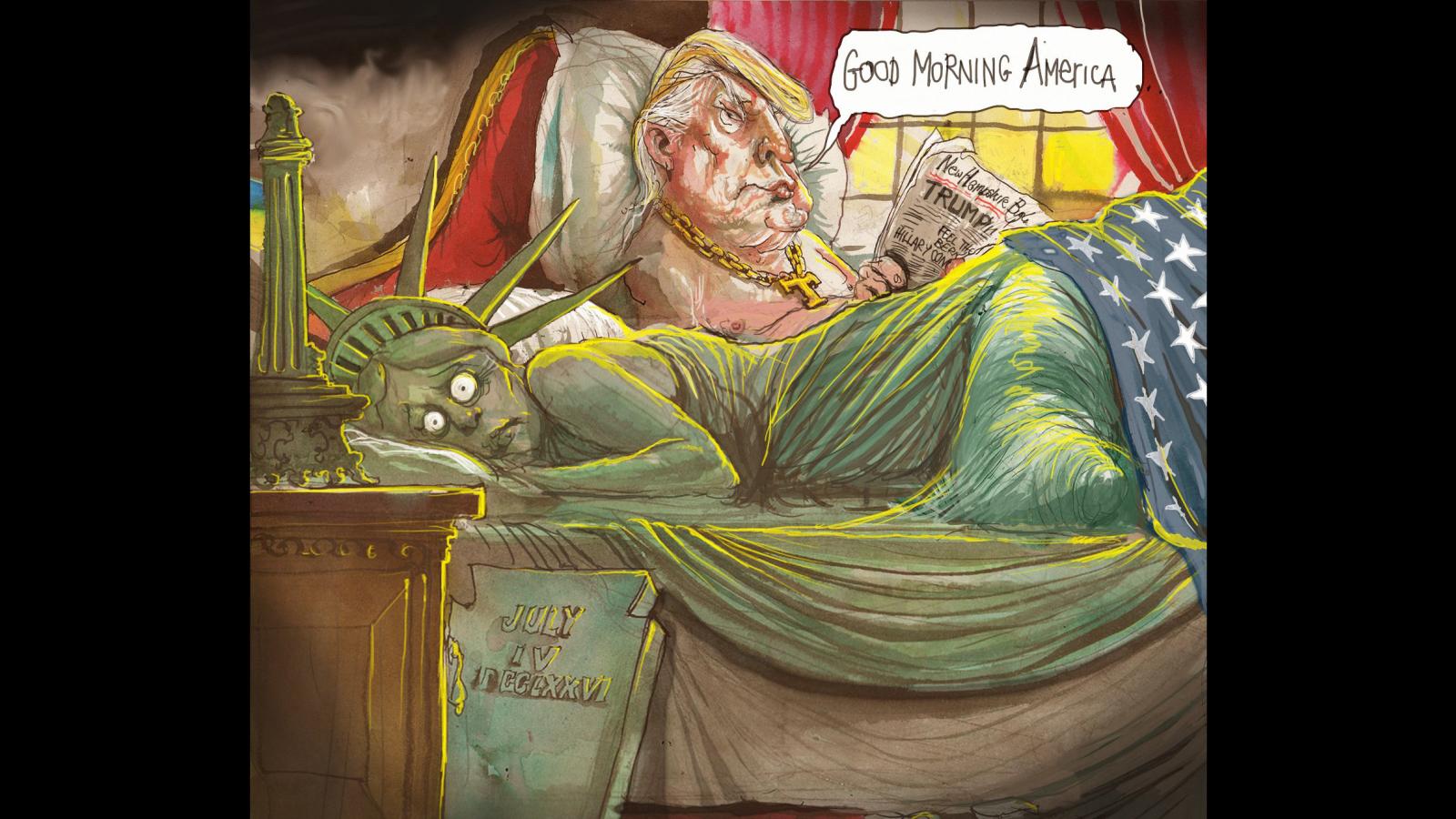 Mert most, hogy a Koestler-inga a demokrácia és a szabadság boldog békeévei után ismét a szélsőség felé leng ki globálisan, minden összeomlani látszik, hitelét veszti az egész mitológia. Old Shatterhand, Bőrharisnya, Brando, vagy ahogy Fondáék felejthetetlen lüktetéssel nekivágnak az országútnak a Steppenwolf Born to be Wild-jára – meginogni látszanak. Ahogy az Easy Riders végén lelövik a déli tahók az északi „korcs” srácokat, úgy nyírja ki Amerika egyik fele a másikat, a fundamentalizmus a liberalizmust és a demokráciát, és baljós, hogy nemcsak a narancshajú kretén és technofasiszta különítményesei, hanem úgyszólván a fél birodalom támogatja a demokrácia és a liberalizmus trónfosztását. Ismét előretörnek mindenhol a széljobbos nacionalista fundamentalisták a bibliai övezetből; a gazdasági hanyatlás, az infláció, az elszegényedő középosztály, a rozsdaövezetek kétkezi munkásainak helyzete, a bevándorlás, a kevésbé képzett rurális, vallásos hívek között végzett agymosás, az állami intézmények felhasználása a pártpolitikában és a jobber véleményterror kiépítésében, az ellenvéleményt hangoztatók egzisztenciális kinyírásában és a dehumanizálásában – mindez széttöri az amerikai álmot, mármint a mi álmunkat Amerikáról.