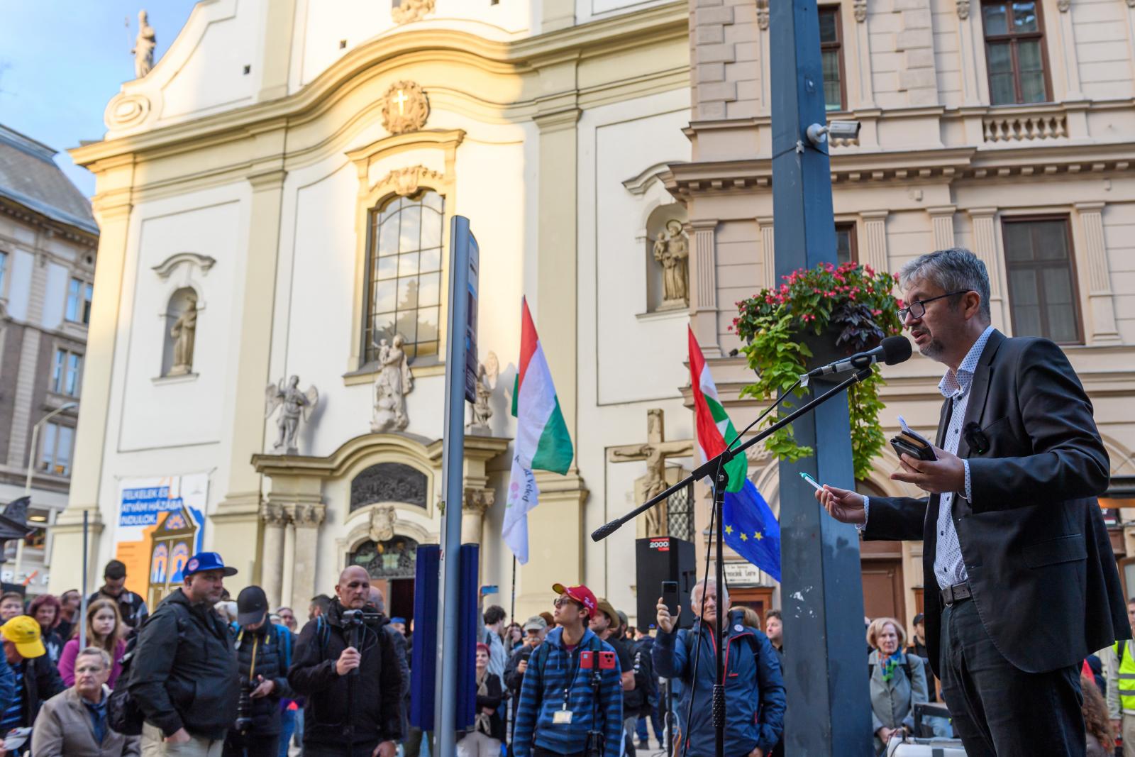 Szerinte azért kell minden héten tüntetni, mert igenis lesz eredmény, mert a hatalom szemében kellemetlenek, veszélyesek, és ahogy fogalmazott, őrzik a parazsat. A tüntetés végén arra kérte a résztvevőket, hogy vonuljanak a Kölcsey Ferenc Gimnáziumhoz az ottani megemlékezésre, mert éppen ma három éve rúgták ki a polgári engedetlenséget vállaló öt pedagógust.
