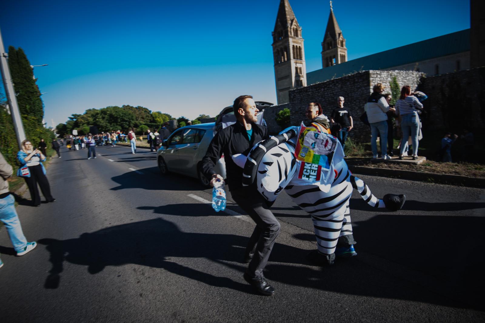 A színpadon korábban felszólalt Martos Csongor vadgazdálkodási aktivista szerint egyre nehezebb közlekedni a vadállatok miatt, de a szabályokat figyelmen kívül hagyó sofőrök miatt is, akik veszélyesek a gyermekeinkre is. A rendezők részéről elhangzott, hogy a rendőrség elkezdte büntetni a Pécs Pride részvevőit, de felszólították az érintetteket, hogy ne fogadják el a büntetést, mert később, az esetleges eljárásokban jogvédő szervezetektől segítséget kapnak. Végül kiderült, hogy nem a részvétel miatt büntettek többeket a rendőrök, hanem azért, mert eltakarták az arcukat. Ez a hatályos törvények szerint tilos, ezért a szervezők arra kérték az érintetteket, hogy ne tegyék.