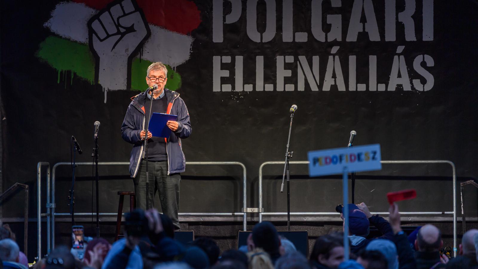 Hadházy Ákos egy jó hírt közölt a színpadon, miszerint az átláthatóságinak nevezett ellehetetlenítési törvény jelen állás szerint az őszi parlamenti ülésszakban sem kerül napirendre. Ez szerinte azt igazolja, hogy igenis lehet nyomást gyakorolni a hatalomra.