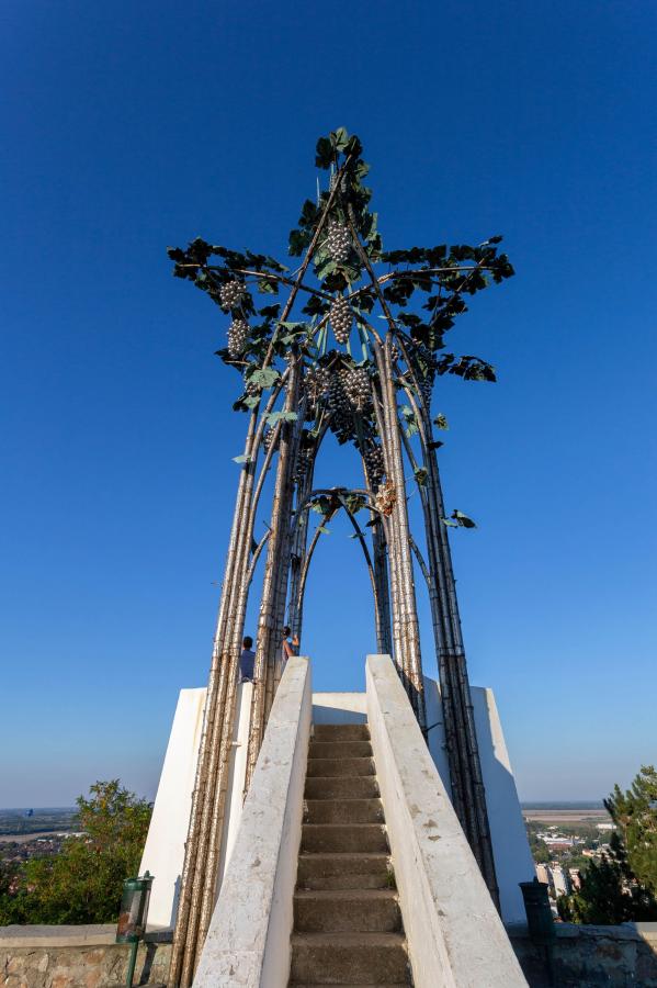 Fent, a Kálvária hegyen a Klausberger Zoltán emlékére állított (eredetileg öt tagból álló) szoborcsoport megrendítően gyönyörű keresztjei fogadják a látogatót. „Hónapokig tartó rettenetes küzdelem után a halál győzedelmeskedett és kiragadott a szerető szülői kar közül egy ifjú életet. Klausberger Zoltán a szekszárdi reál gimnázium hatodik osztályú tanulója Klausberger Károly a vallás- és közalapítványi uradalom erdő főtanácsosának és nejének Gerő Margitnak egyetlen gyermeke folyó hó 9-én hosszas és kínos szenvedés után Budapesten elhunyt. A hatalmas, korához képest rendkívül fejlett ifjú még október hó elején tüszős mandula gyulladást kapott és ebből kifolyólag vérmérgezést, amely rettenetes betegség a leggondosabb budapesti szanatóriumi ápolás dacára is kioltotta reményteljes ifjú életét. Temetése folyó hó 11-én Budapesten volt, amelyre tanárai és tanuló társai közül többen felutaztak. A rettenetes csapás alatt összetört szülők iránt városszerte nagy a részvét” – írta a Tolnamegyei Újság 1929-ben. A keresztek mögötti építmény látványa zavarba ejtő, durván kikezdi a szakralitást, ahogy a szép táj szemlélésére 1983-ban készült Szőlő-szobor és kilátó belsején a felirat: „A gyomrodat huznám (sic!) végig az M 7-es metróvonalán”.