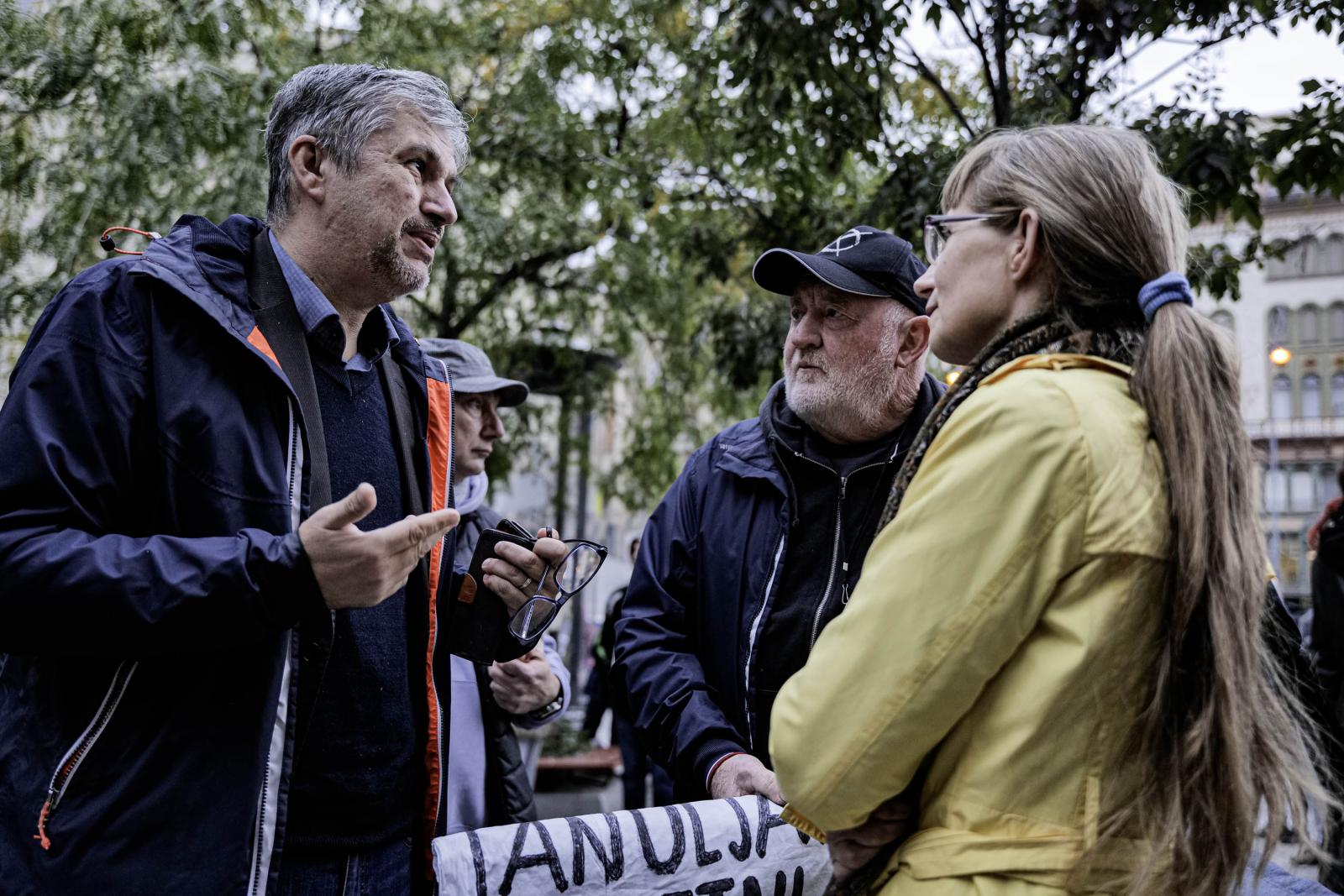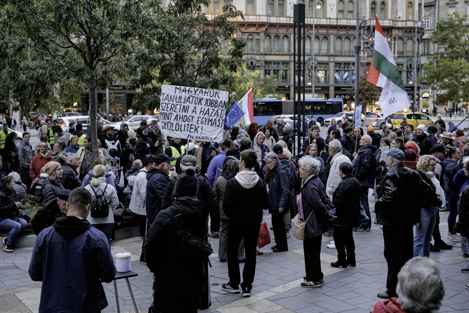 Új formában nem tüntetéssel, hanem úgynevezett tiltakozással folytatta kedden tavasztól kezdett, kisebb megszakításokkal hetente megtartott utcai megmozdulásait. A kezdeti hídfoglalásokat, amelyeken jórészt a Momentum politikusai is részt vettek, felváltotta a Ferenciek terei helyszín, ahol többnyire néhány százan, de volt, hogy ezres számban, de mindig megjelentek tüntetők, és hangosítással gyakran több beszéd is elhangzott. Most azonban egy szál mikrofonnal a kezében Hadházy Ákos ment ki tüntetni.