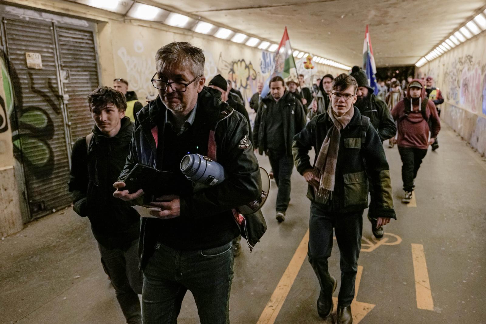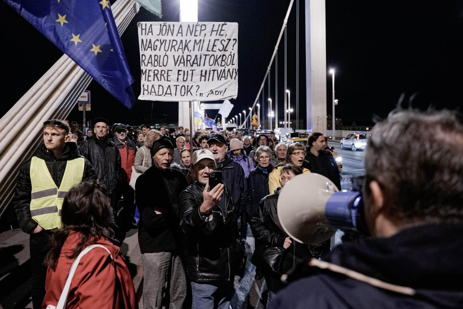 A független országgyűlési képviselőt kezdetben alig néhány tucatnyian vették körbe, röviden beszélt a megjelentekhez, majd kérdezni lehetett tőle, és ő az egyre hűvösebb időben is fáradhatatlanul válaszolt. Végül több mint 200-an gyűltek össze, így ahogy korábban is tették, elkezdtek vonulni, most az Erzsébet hídra majd vissza, egy forgalmi sávot és a járdát is elfoglalva. Előzőleg a Ferenciek terén a zebrán sétáltak és énekeltek, hol a Kossuth-indulót, a kötelező Himnusz és a Szózat mellett felcsendült a Tisza Párt gyűléseiről ismerős Tavaszi szél vizet áraszt is.