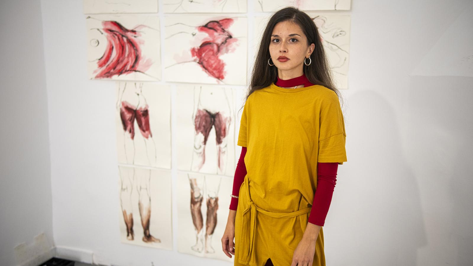 Ehhez az érzéshez kapcsolódik a diplomamunkája is, mely egy rajz- és szoborsorozatból áll. – Megkerestem a testemen azokat a részeket, ahol legérzékenyebb a bőröm, majd ezekről mintát vettem gipszből, aztán a Bari Károly verseiből kijegyzetelt mondatokat írtam rájuk, például hogy „egymás húsából élünk”, „támassz a kortyból óceánt” vagy „a mellkasomra már tényleg jöhetne az a férfi, aki megváltja ezt a világot”. A testemet aztán papíron is ábrázoltam: lerajzoltam egyes részleteket, a csigolyáimat, a térdemet, a bokámat, majd azoknak az érzékeny területeit pirossal vagy narancssárgával festettem be – mondja Anita. A sorozattal azt akarta kifejezni, hogy a lelki problémák mennyire képesek hatni a testre, és negatívan befolyásolni azt, így érdemes a festéket, a rossz érzést „lemosni” magunkról, azaz megszabadulni ezektől a rossz gondolatoktól.