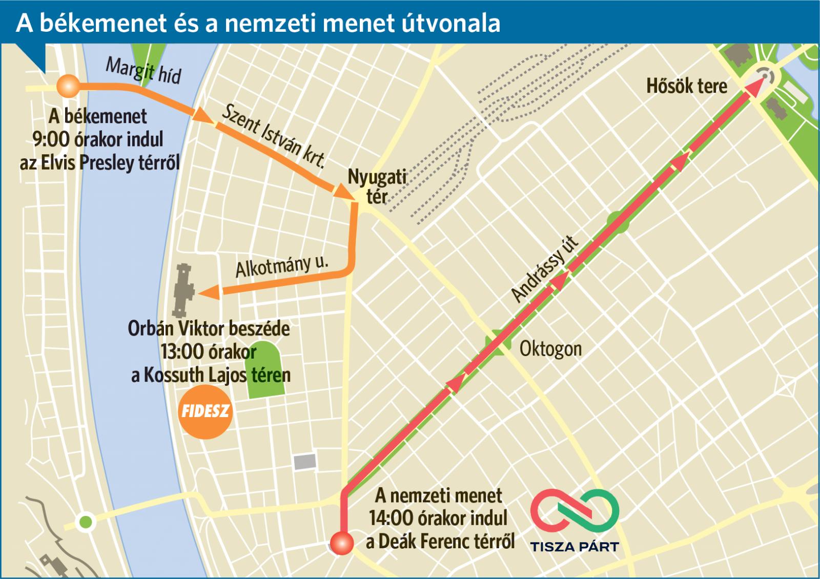 A Magyar Péter által meghirdetett Nemzeti Menet délután 2 órakor, a Deák térről indul a Hősök terére: a Tisza Párt elnöke mondja el a maga ünnepi beszédét.