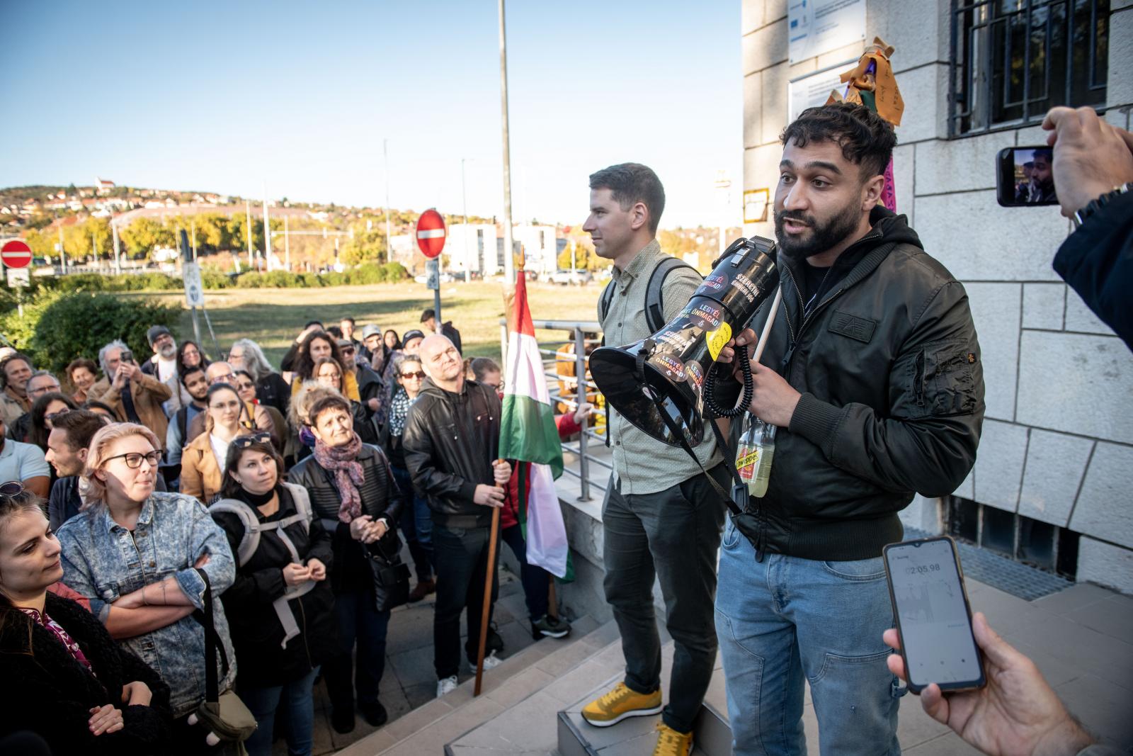A tüntetők megtapsolták az ügyvéd szavait és védencét. Buzás-Hábel Géza megköszönte a tüntetőknek, hogy kiállnak érte, s külön megköszönte ezt volt iskolája, a romákat oktató pécsi Gandhi Gimnázium diákjainak és tanárainak. Amikor ideért, nem tudta folytatni, mert hangját elfojtották érzelmei.