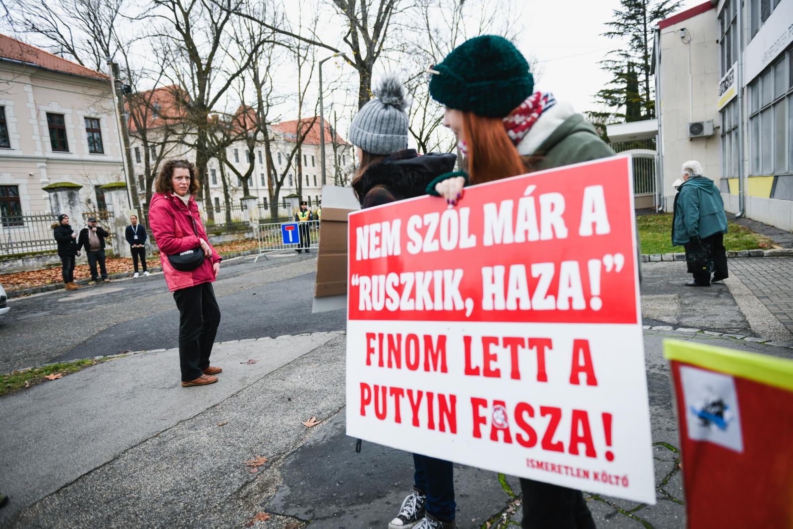 A bejáratnál ellentüntetőkbe ütközünk. Kecskemétiek, korábban is voltak már demonstrálni, amikor Orbán Viktor idejött tavaly. Egyikük, egy férfi úgy gondolja, Kecskemét nem annyira fideszes város, amennyire az eddigi helyi választási eredményekből látszik. Szerinte a Tisza Párt nyerhet tavasszal itt is. A mellette álló lány reménykedik, de hozzáteszi: annyiszor reménykedtek már, aztán az ellenkezője jött be…