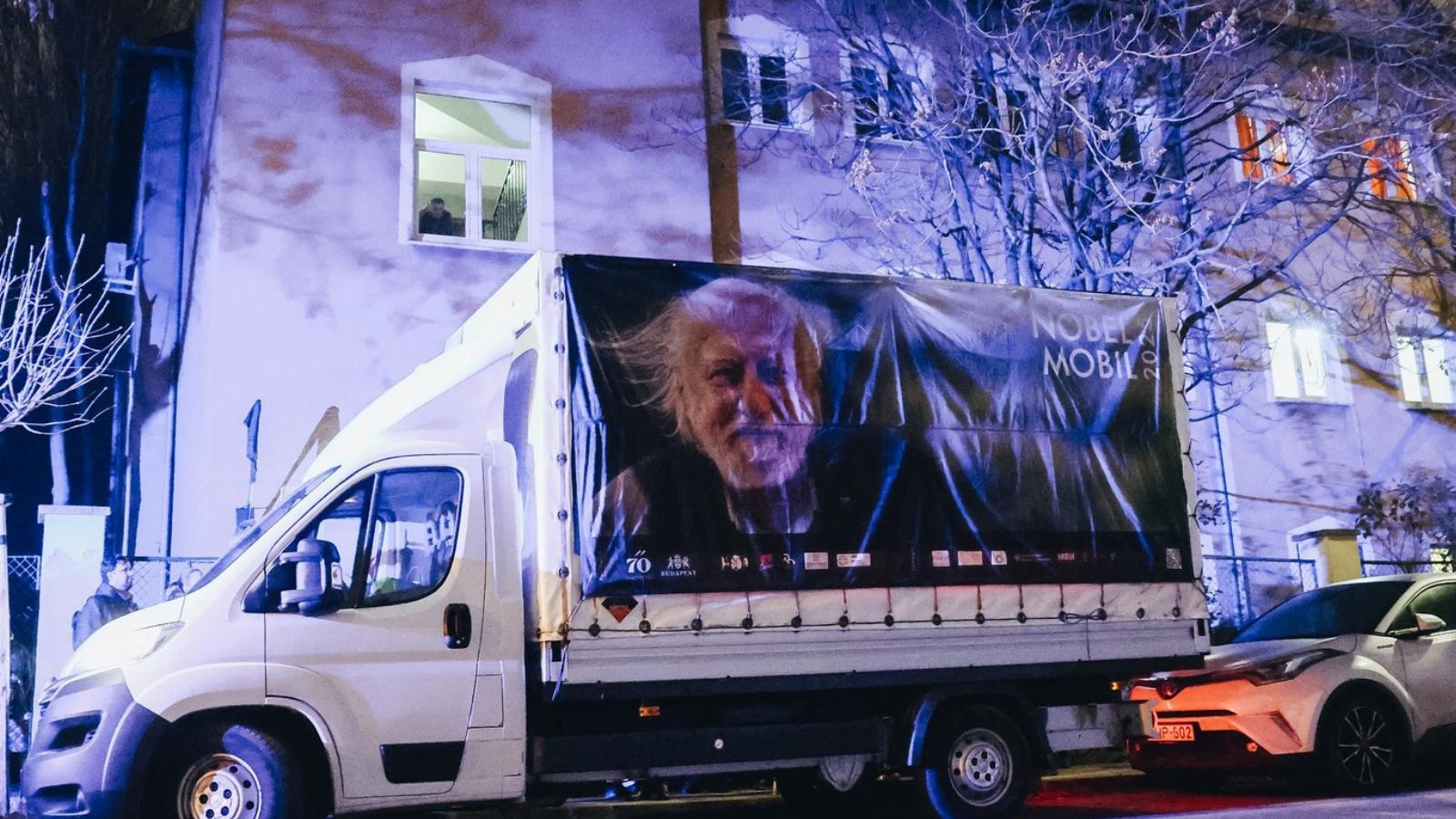 Azon a napon, amikor a világhírű magyar író átveszi a Nobel-díját, rendhagyó felolvasó turné járja Budapest utcáit. A 13 megállót érintő NobelMobil furgonról menet közben Krasznahorkai László saját felolvasásában a Mindig Homérosznak és a Háborús architektúrák szövege szól, a megállókban pedig bárki felolvashat egy részletet a november 11-én megjelent, A magyar nemzet biztonsága című regényéből.