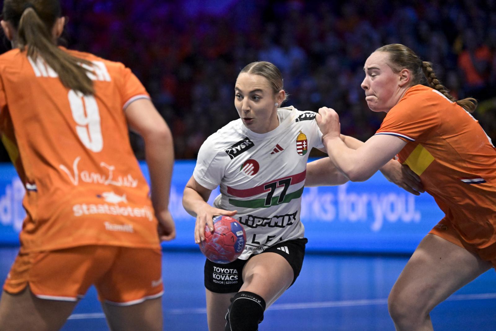Három győri holland – Kelly Dulfer, Dione Housheer, Bo van Wetering – valamint egy ferencvárosi – Angela Malestein – is szerepelt a hollandoknál, és hát a magyarországi légiósok gólerősen nyitottak. Ennek ellenére 4–3-nál még magyar fórt mutatott az eredményjelző, de aztán tíz percre földbe állt a támadójáték. Ezalatt a hollandok szépen elléptek, ráadásul egymást érték a magyar technikai hibák. Harminc perc múltán ötgólos magyar hátrányban mentek szusszanni a felek (14-9), és már ekkor látszódott: csoda vagy holland összeomlás nélkül innen nincs visszaút. Ráadásul a bajt tetézte, hogy a 39. percben Klujber Katrin nem szándékosan, de visszafutás közben véletlenül elgáncsolta a ziccerben kilépő Van Weteringet, amiért a csapatkapitányt kiállították a bírók. A hollandok pedig tökéletesen kihasználták az előnyt, a 20–13 bőven kitartott a végéig: Hollandia–Magyarország 28-23.