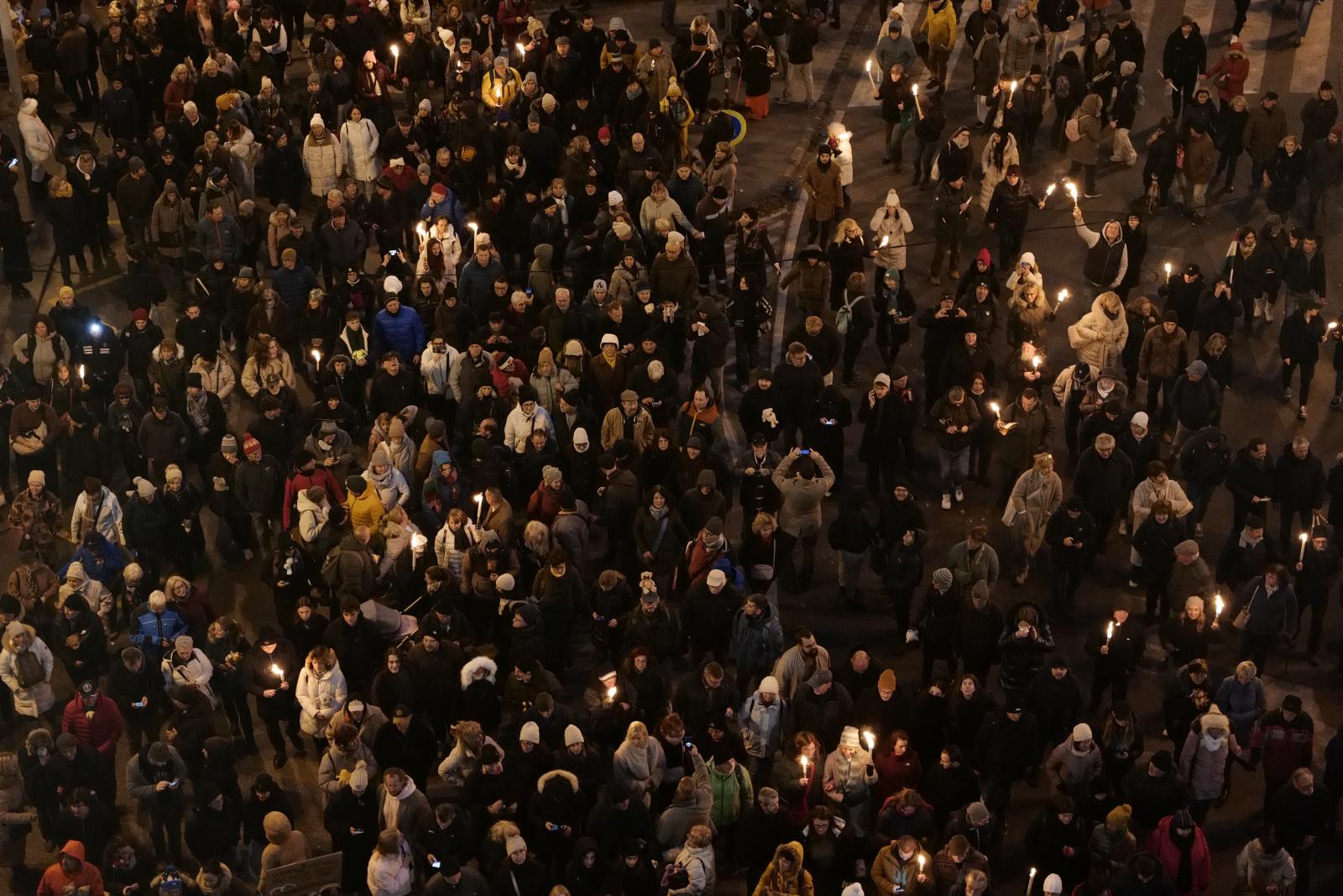 Ez egy tízezres tüntetés. Látszik, hogy rengetegen vannak a környéken, már a mobilnet is rakoncátlankodik.
